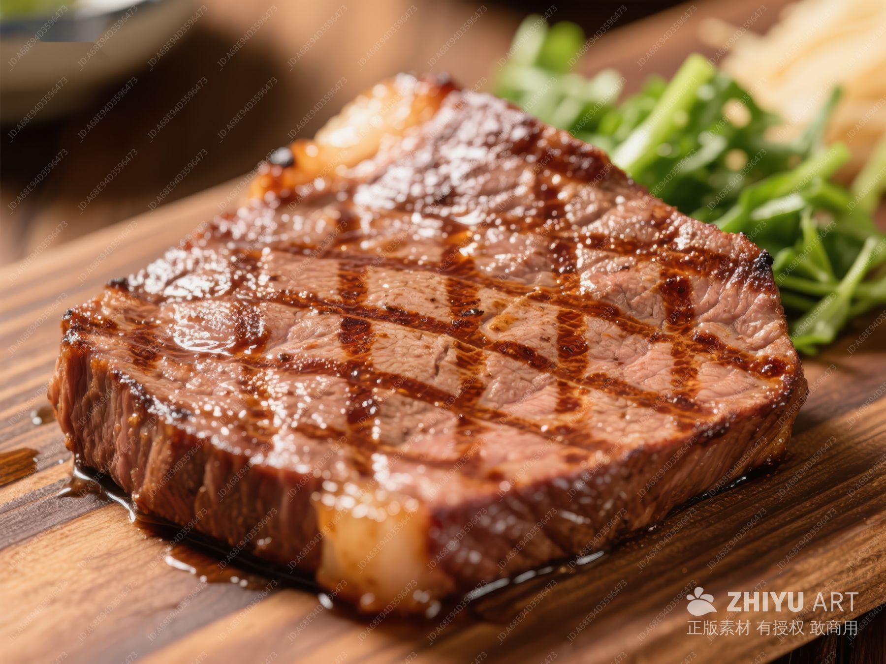 烤制牛排,表面焦香,搭配绿叶蔬菜