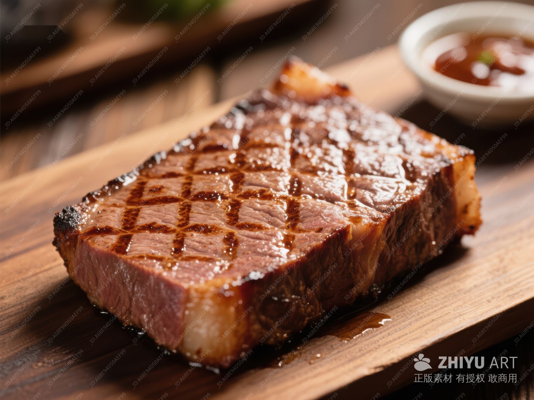 烤制牛排,表面焦香,搭配绿叶蔬菜