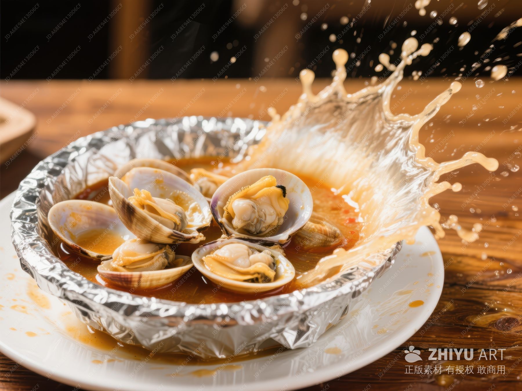 热气腾腾的蛤蜊汤溅起水花