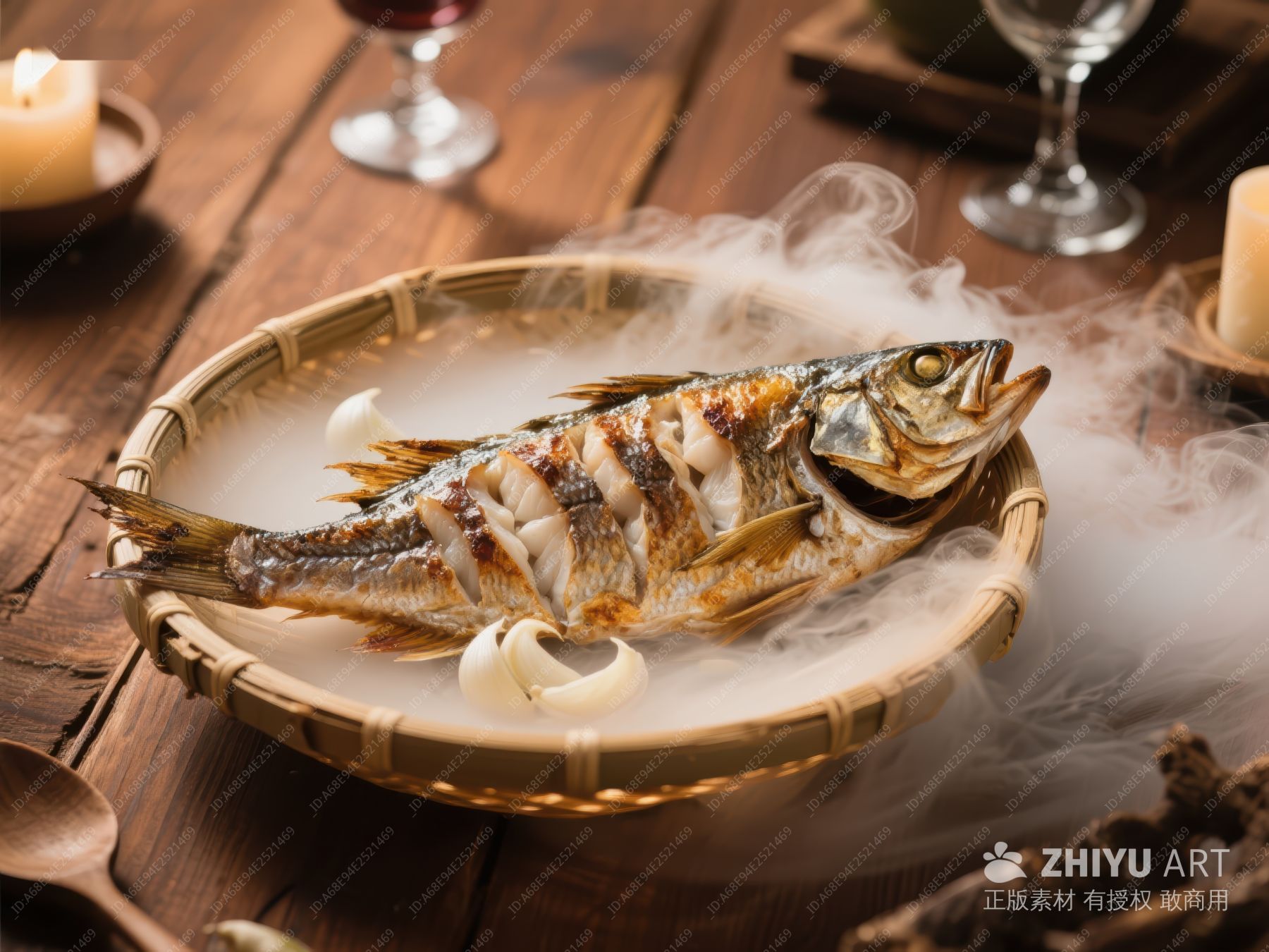 精致鱼肴,烟雾缭绕的美食呈现 565