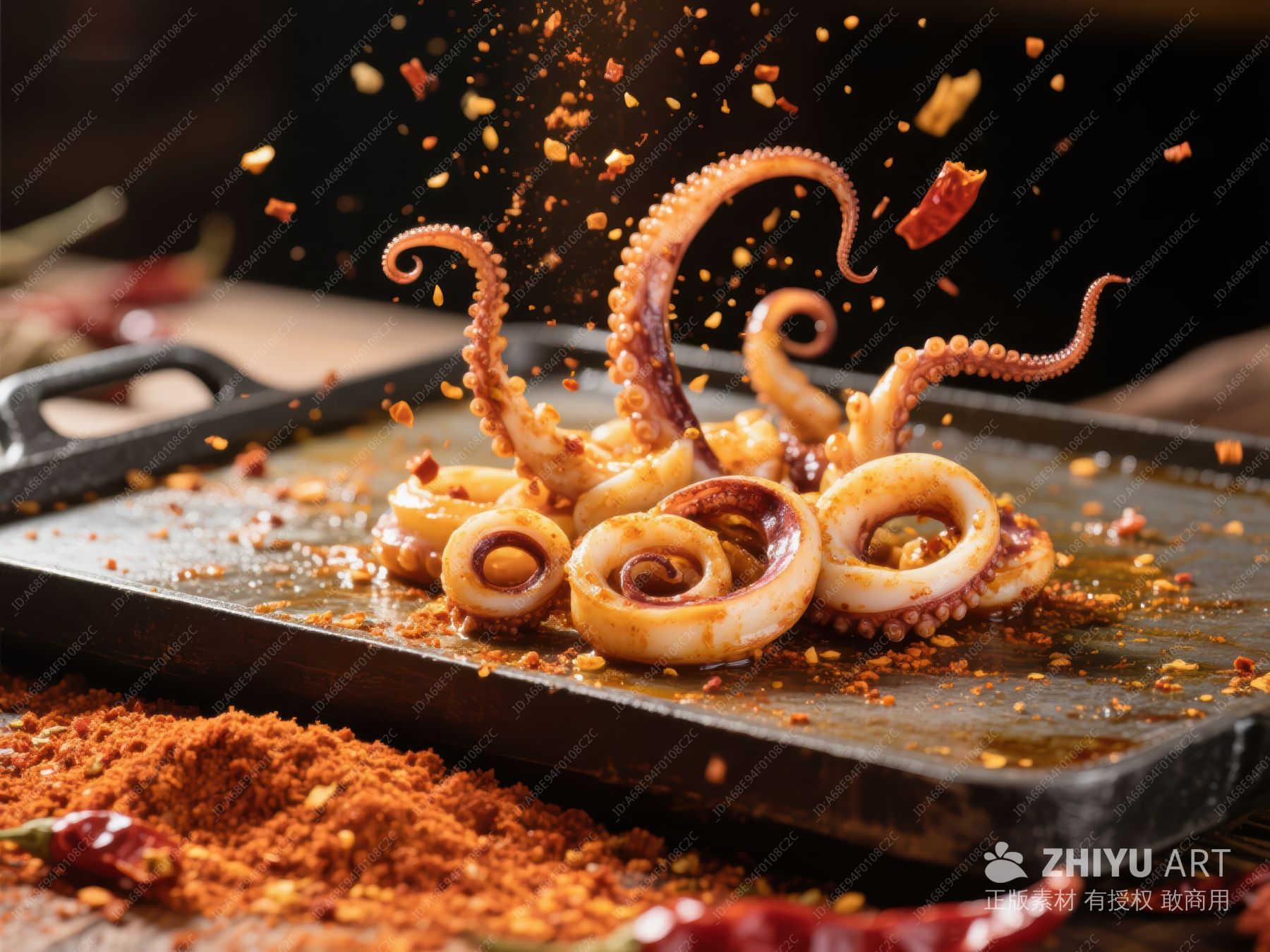 香辣鱿鱼卷热盘,餐桌上的美味诱惑