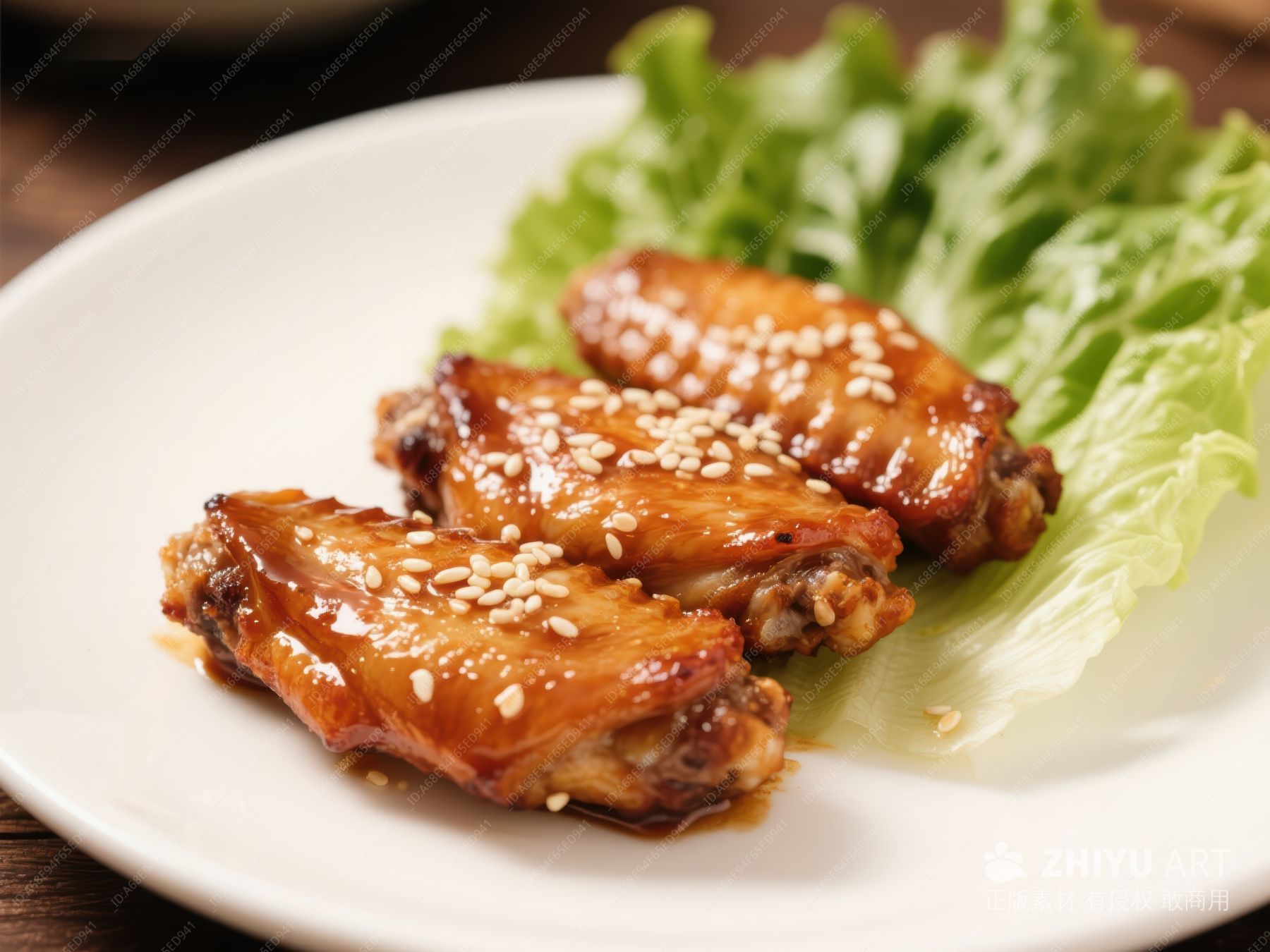 芝麻鸡翅配生菜
