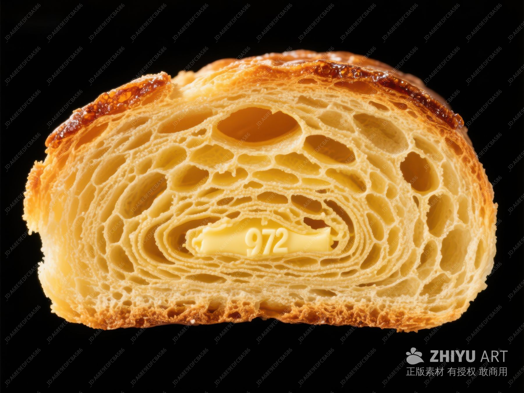 金黄酥皮面包的横切面