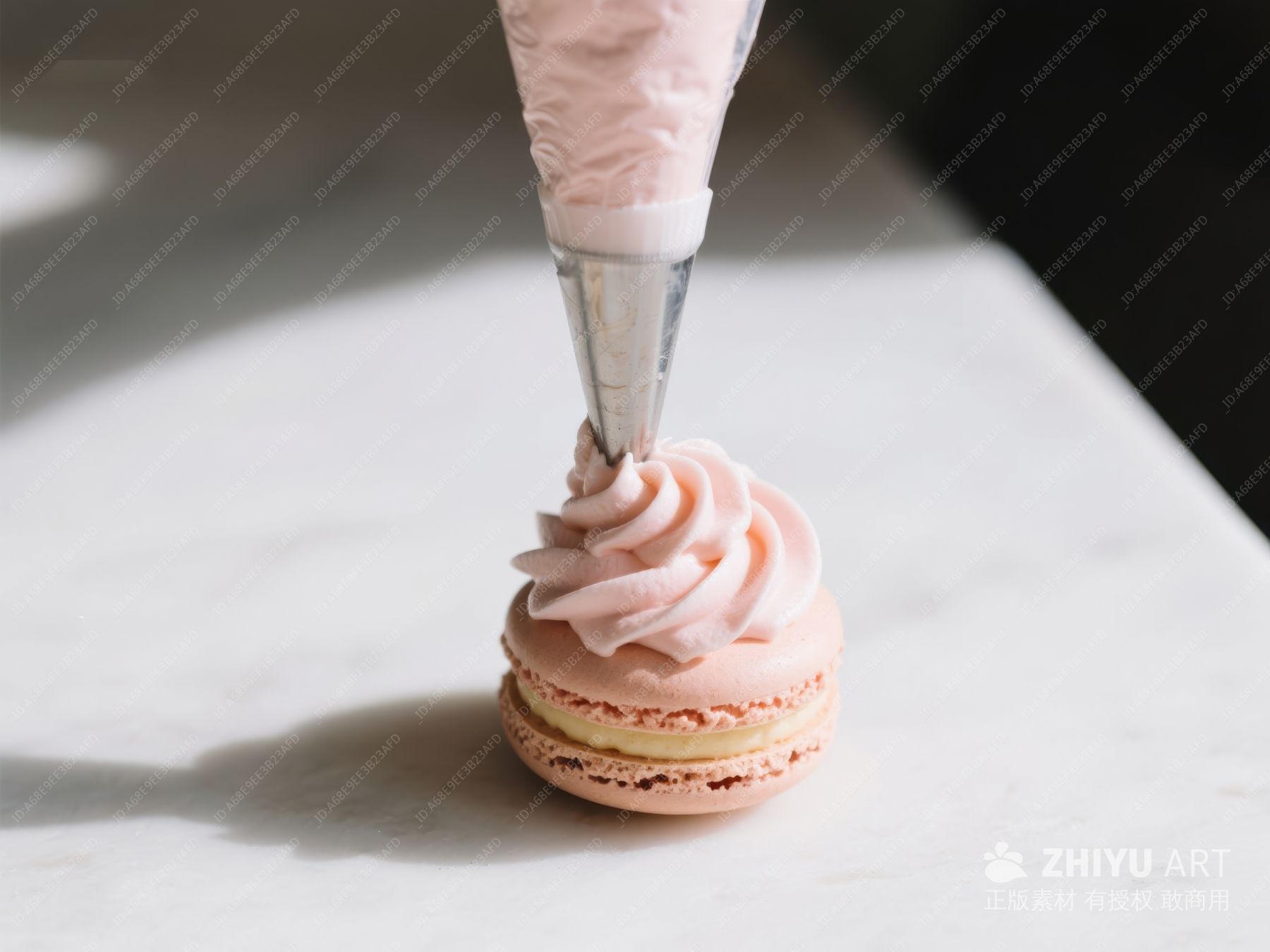 粉色马卡龙挤奶油特写
