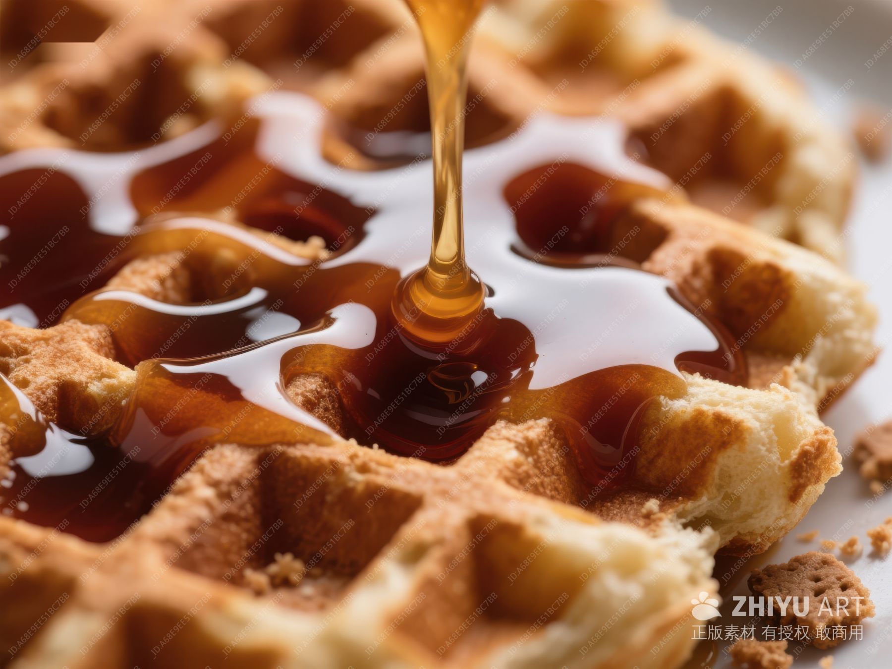 蜂蜜淋洒在金黄松软的华夫饼上