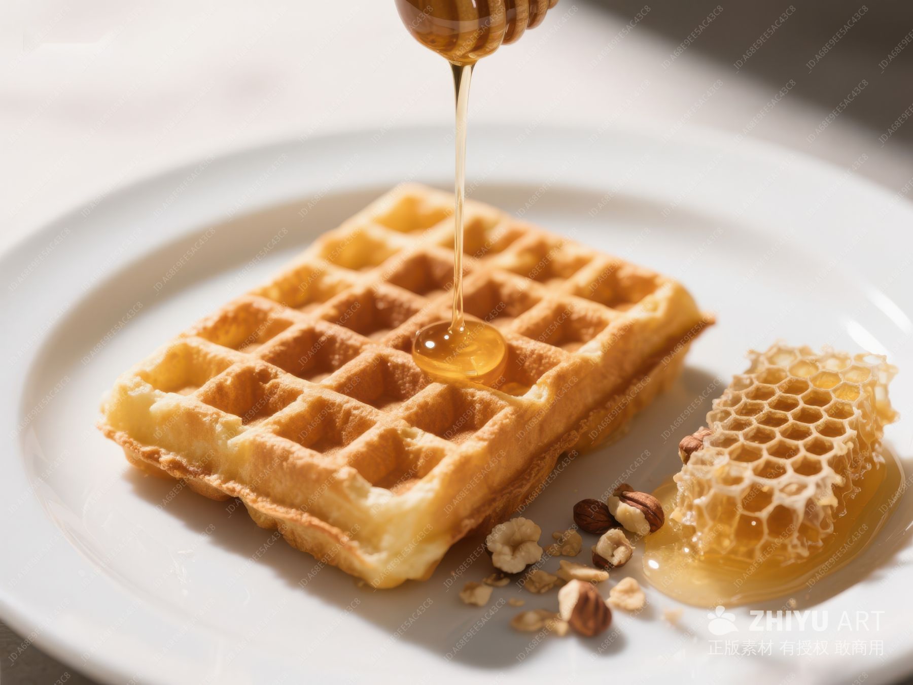 蜂蜜滴落华夫饼,甜蜜瞬间