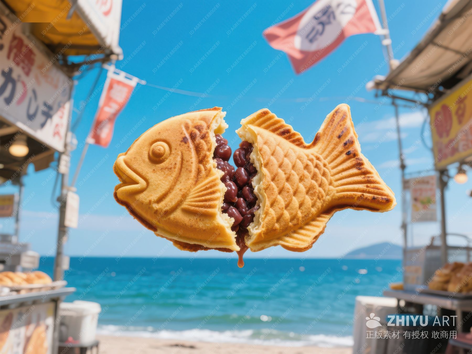海边摊位上的鱼形红豆饼