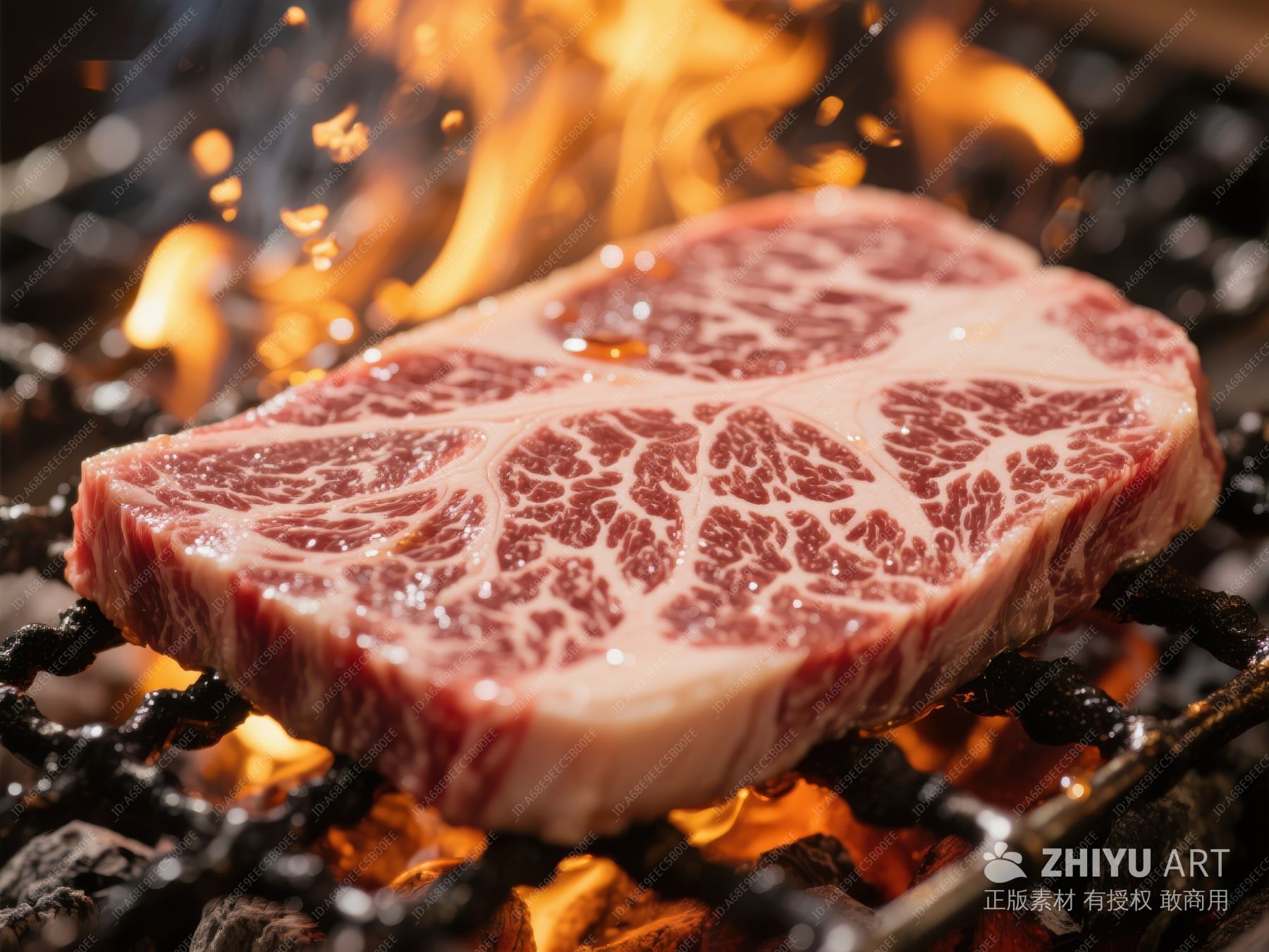 火焰炙烤的大理石纹牛肉