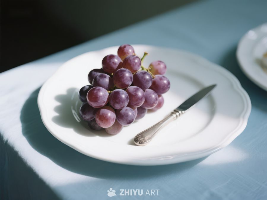 盘中紫葡萄与银刀 286
