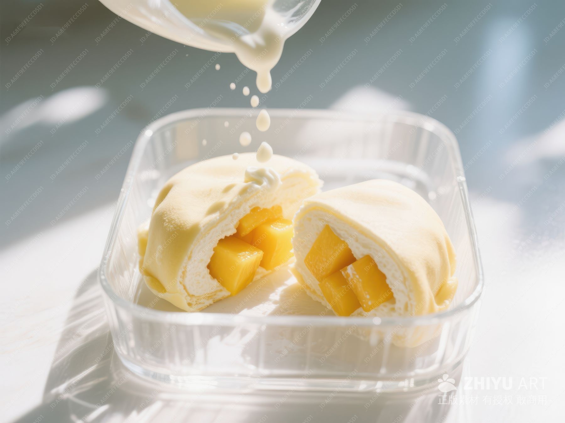 芒果甜点浇上奶油酱