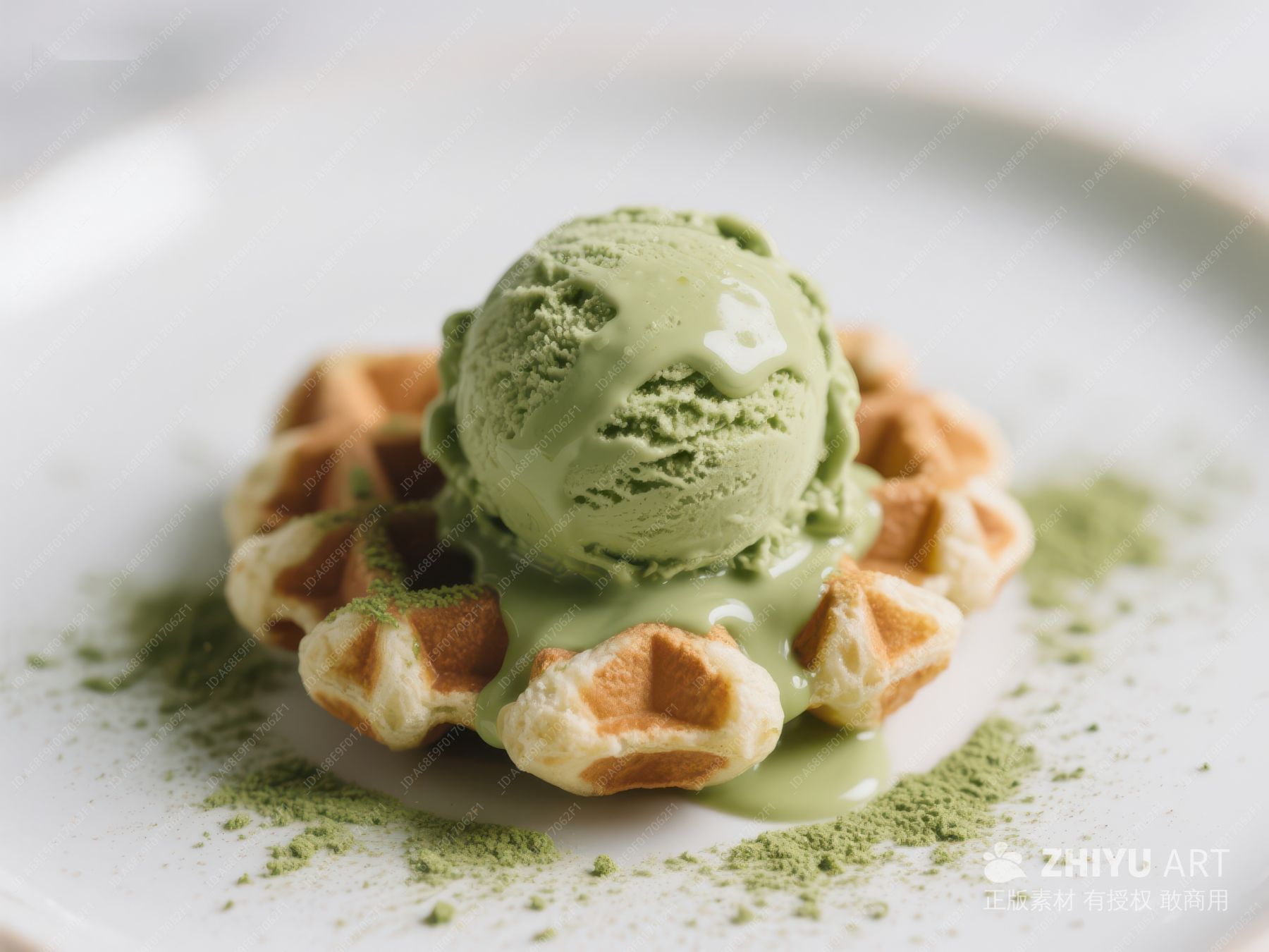 抹茶冰淇淋配华夫饼