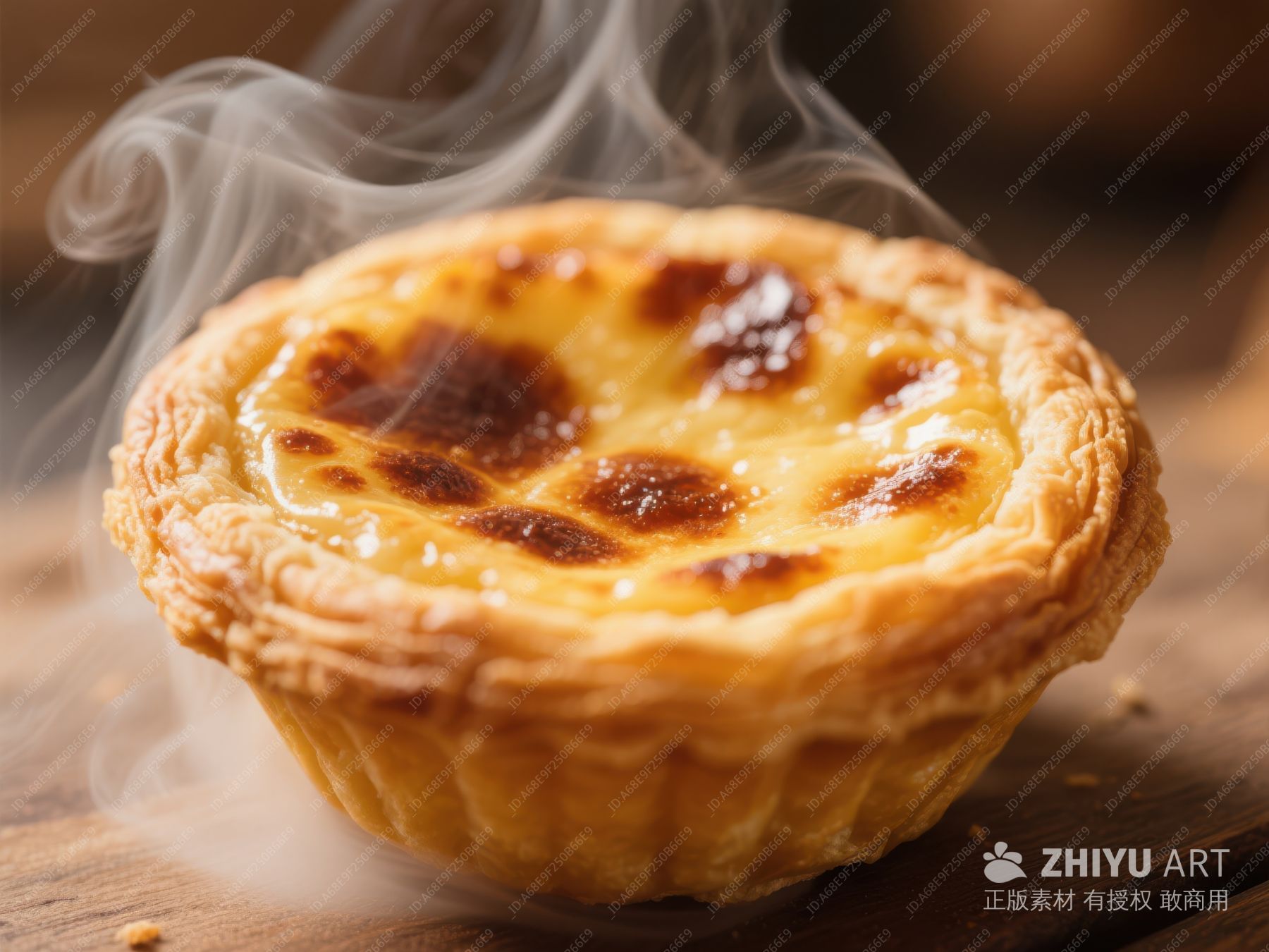 热腾腾的蛋挞在木质桌上散发香气