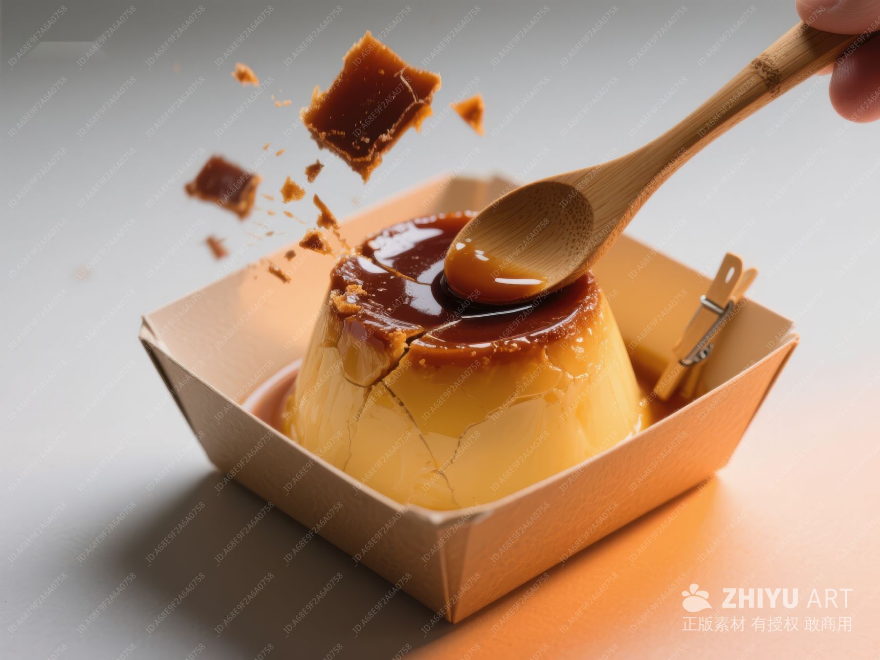 勺子敲击焦糖布丁瞬间