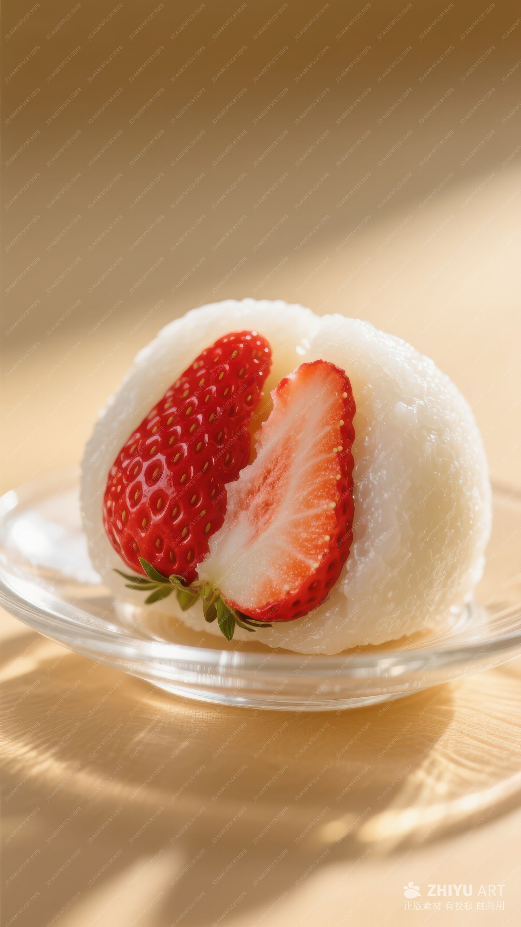 草莓夹心糯米团,点缀绿叶与糖粉 7