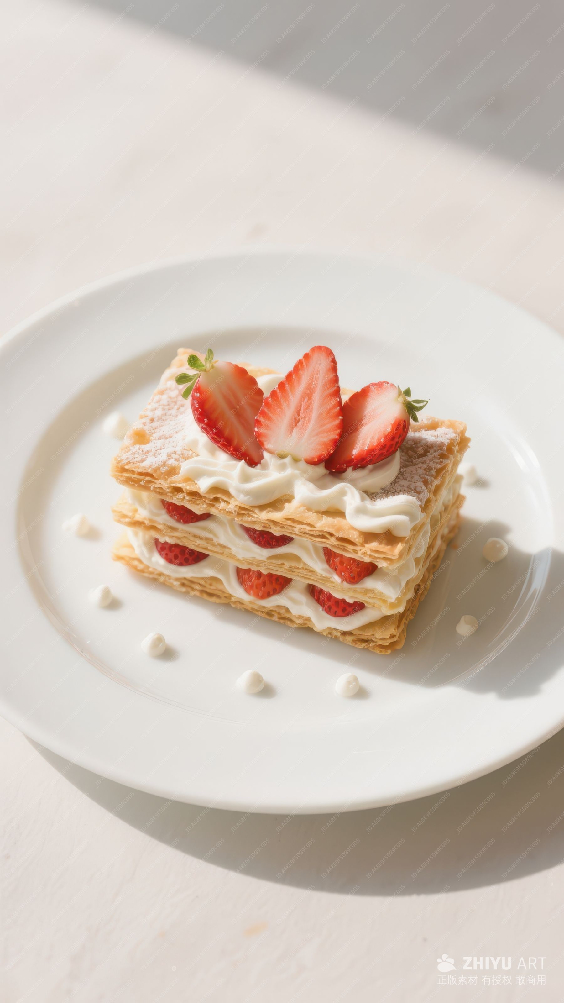草莓点缀的千层蛋糕