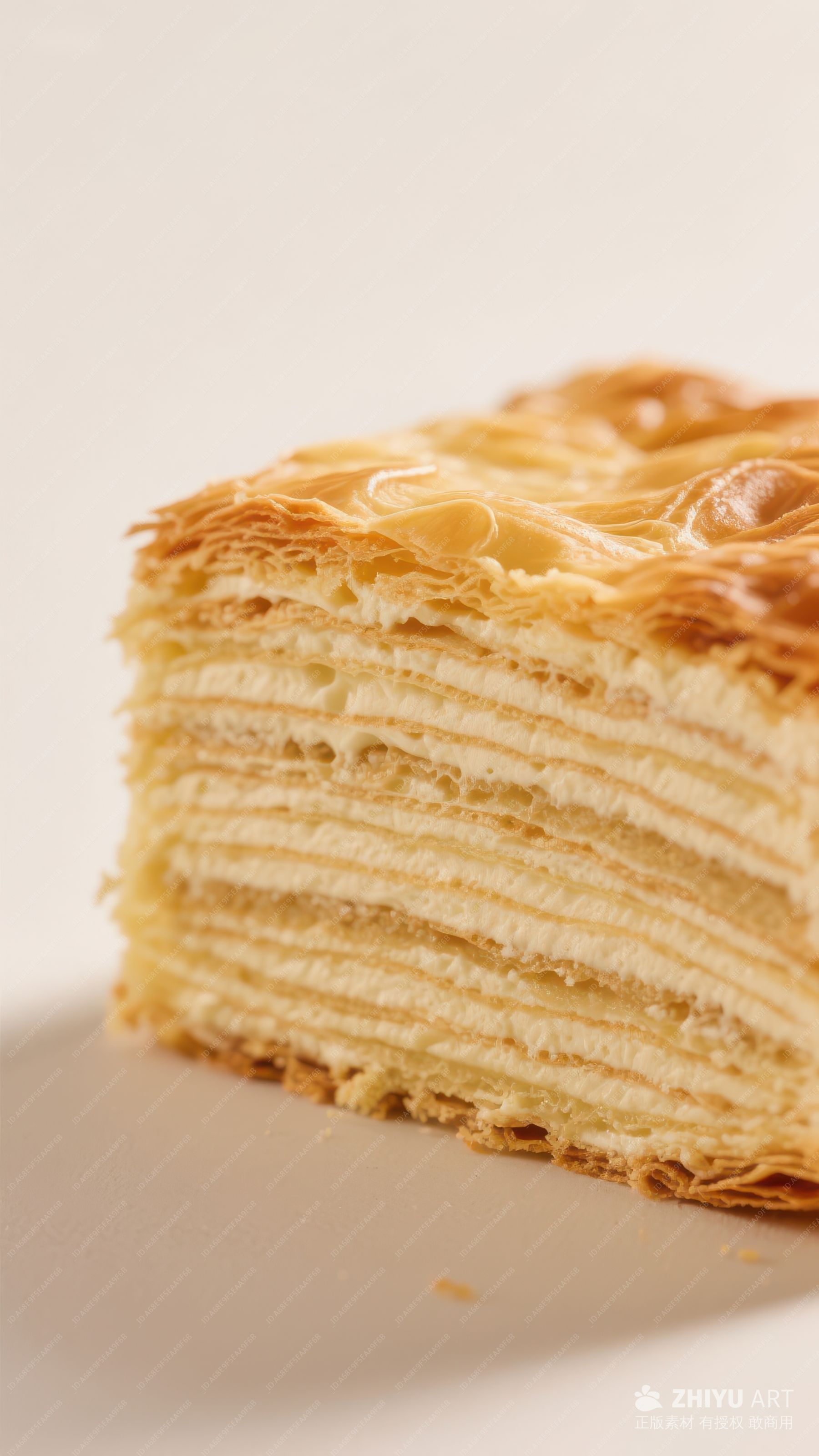 层层叠叠的酥皮糕点特写