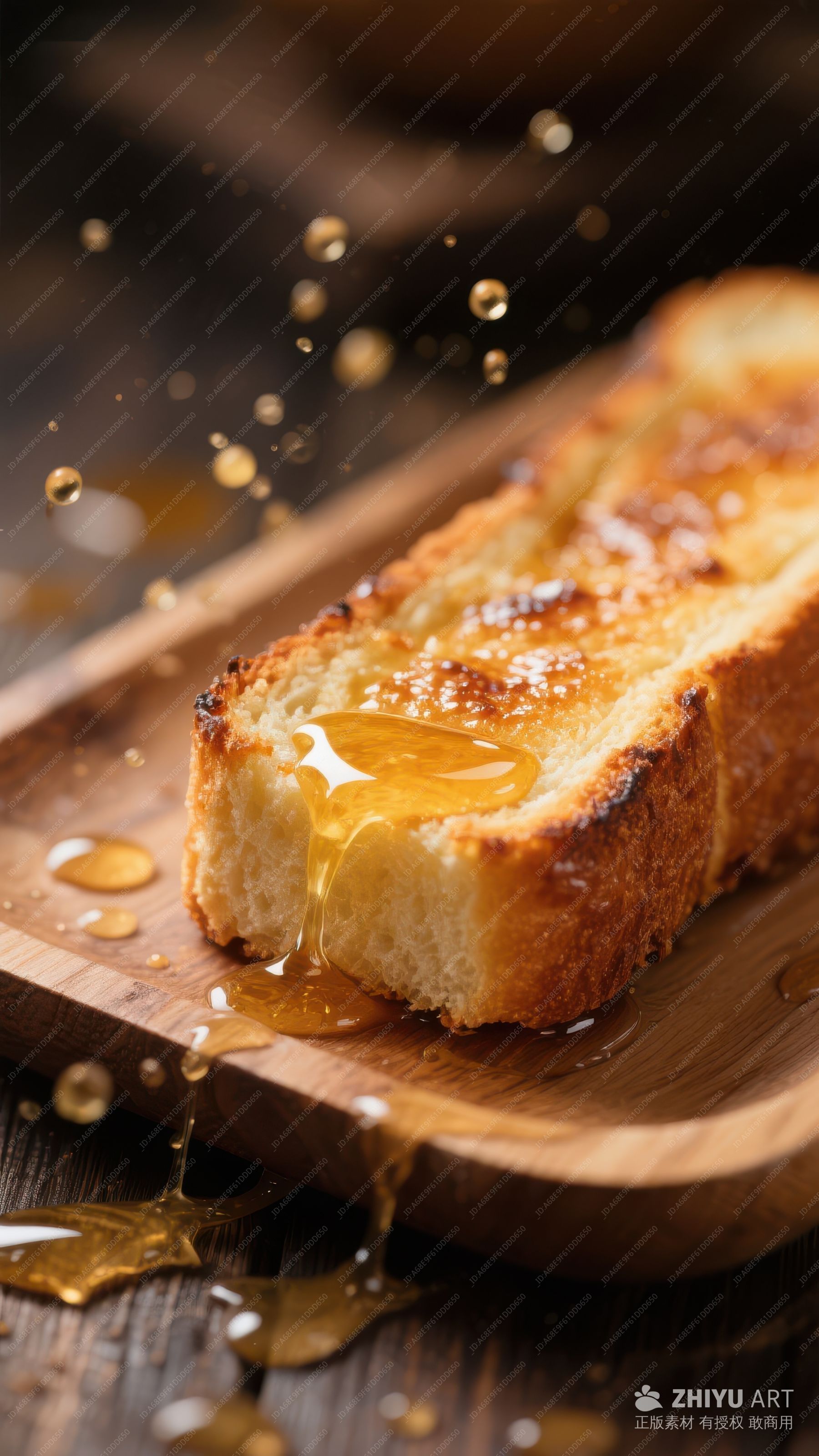蜂蜜淋在烤面包上,滴落瞬间