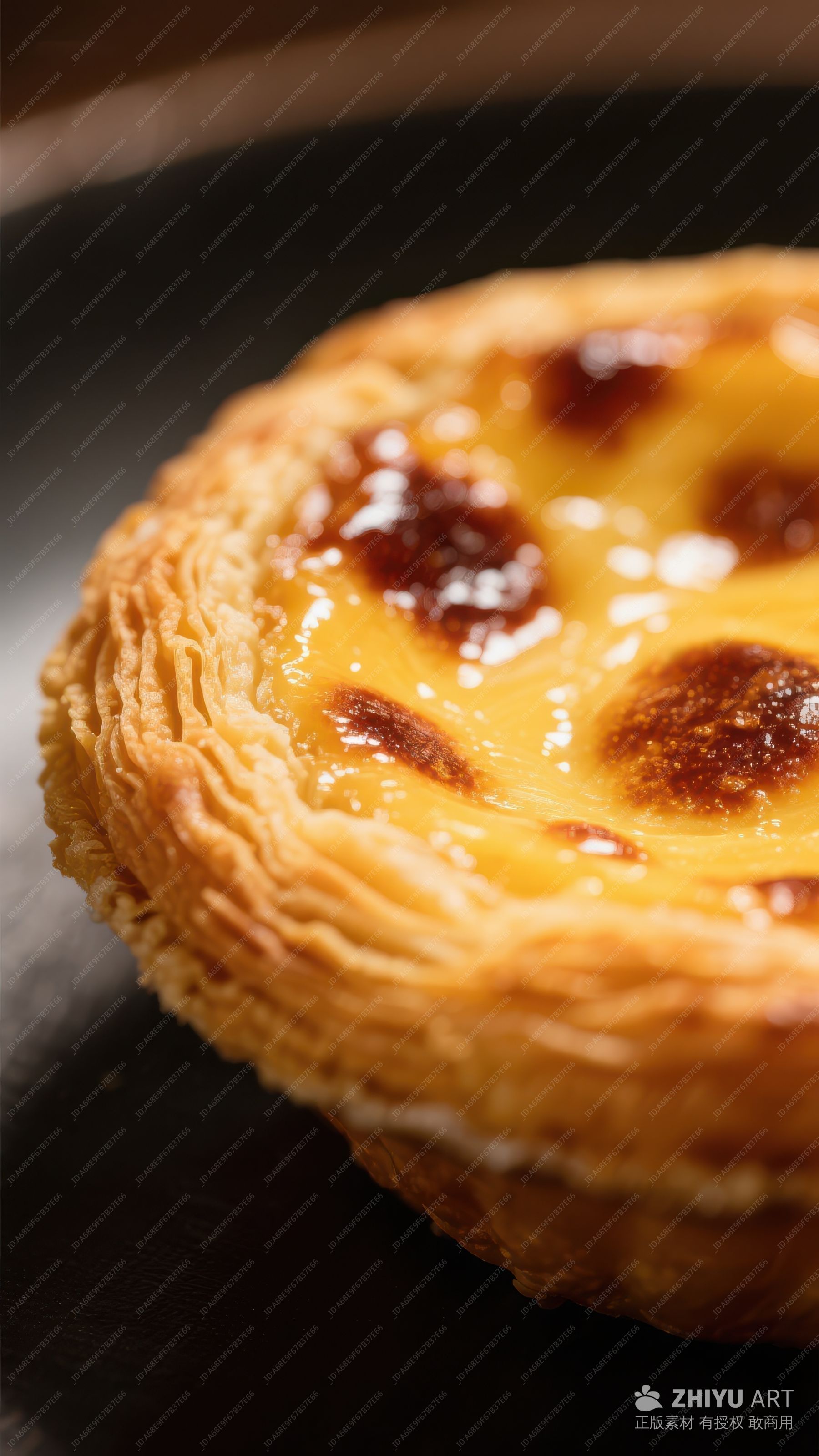 金黄蛋挞特写,表面焦糖化