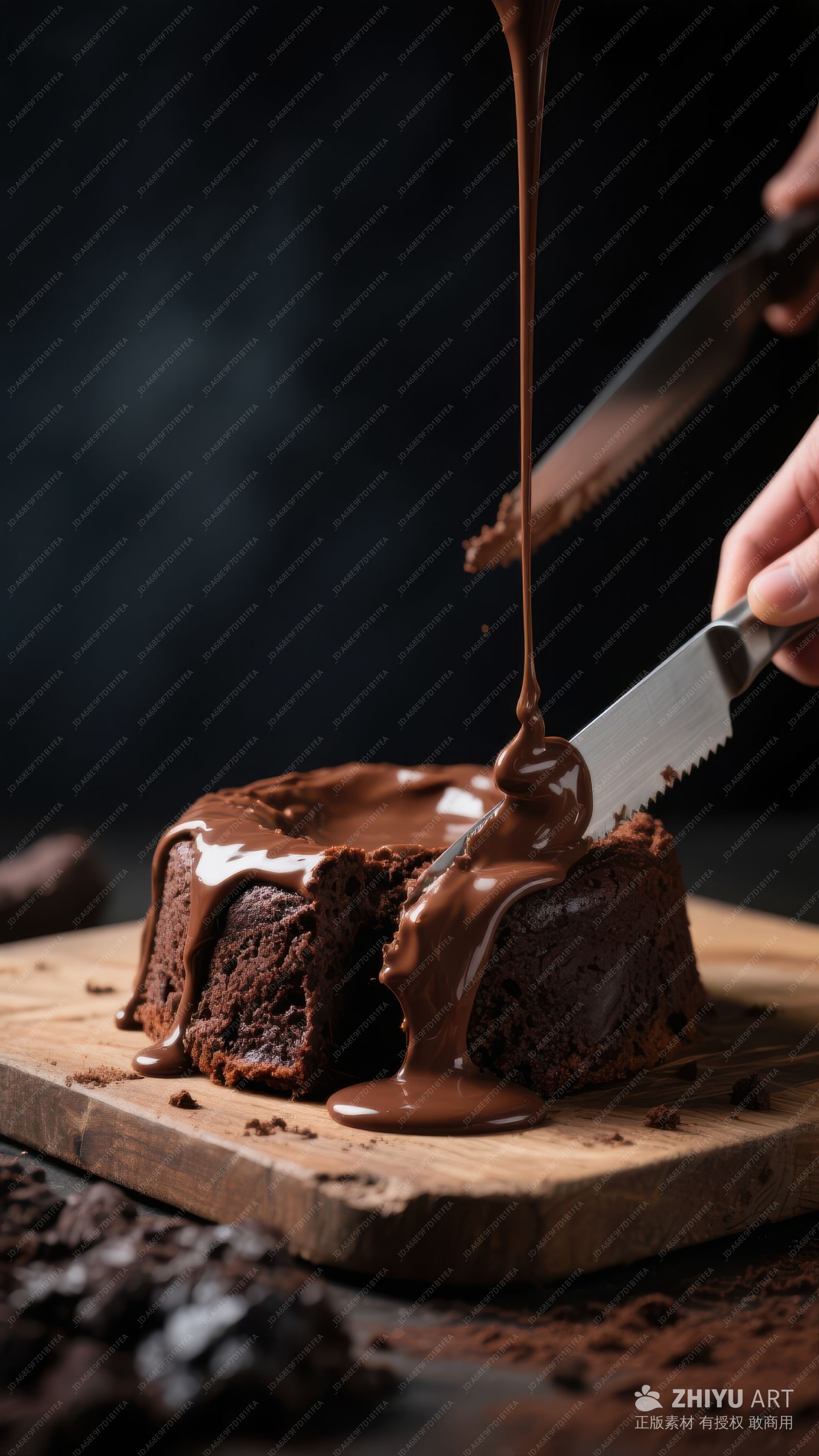 巧克力蛋糕块,酱汁滴落