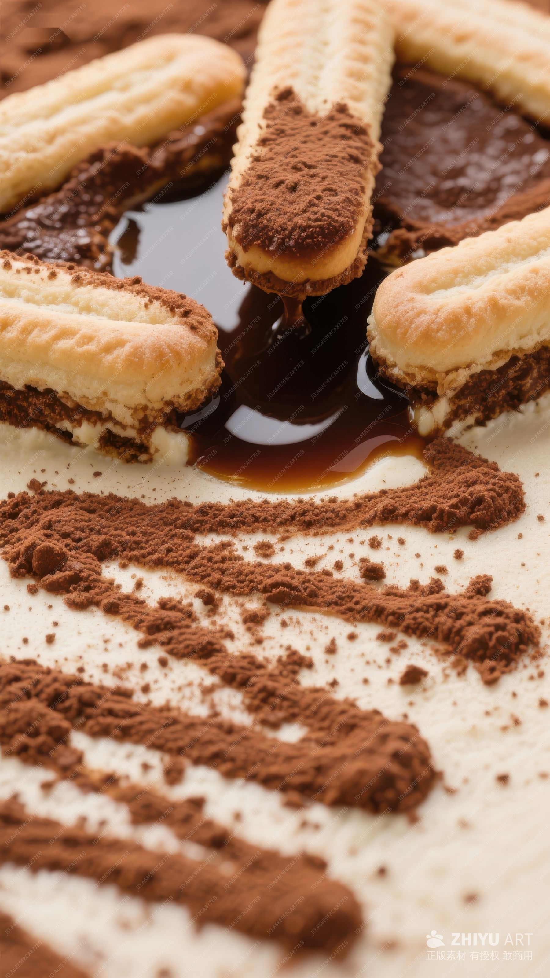 浸泡在巧克力酱中的手指饼干