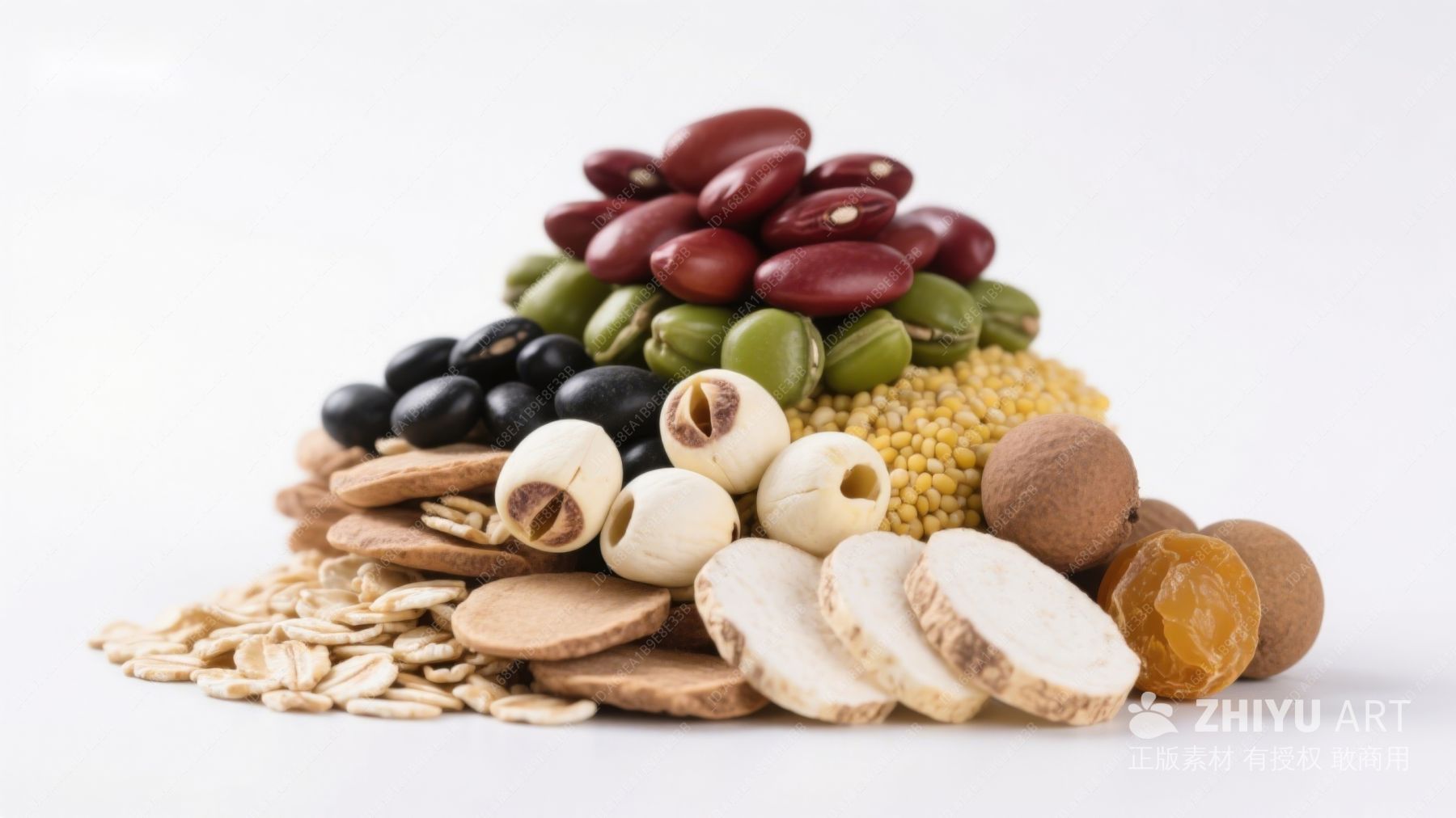 多样食材展示:谷物、豆类与坚果