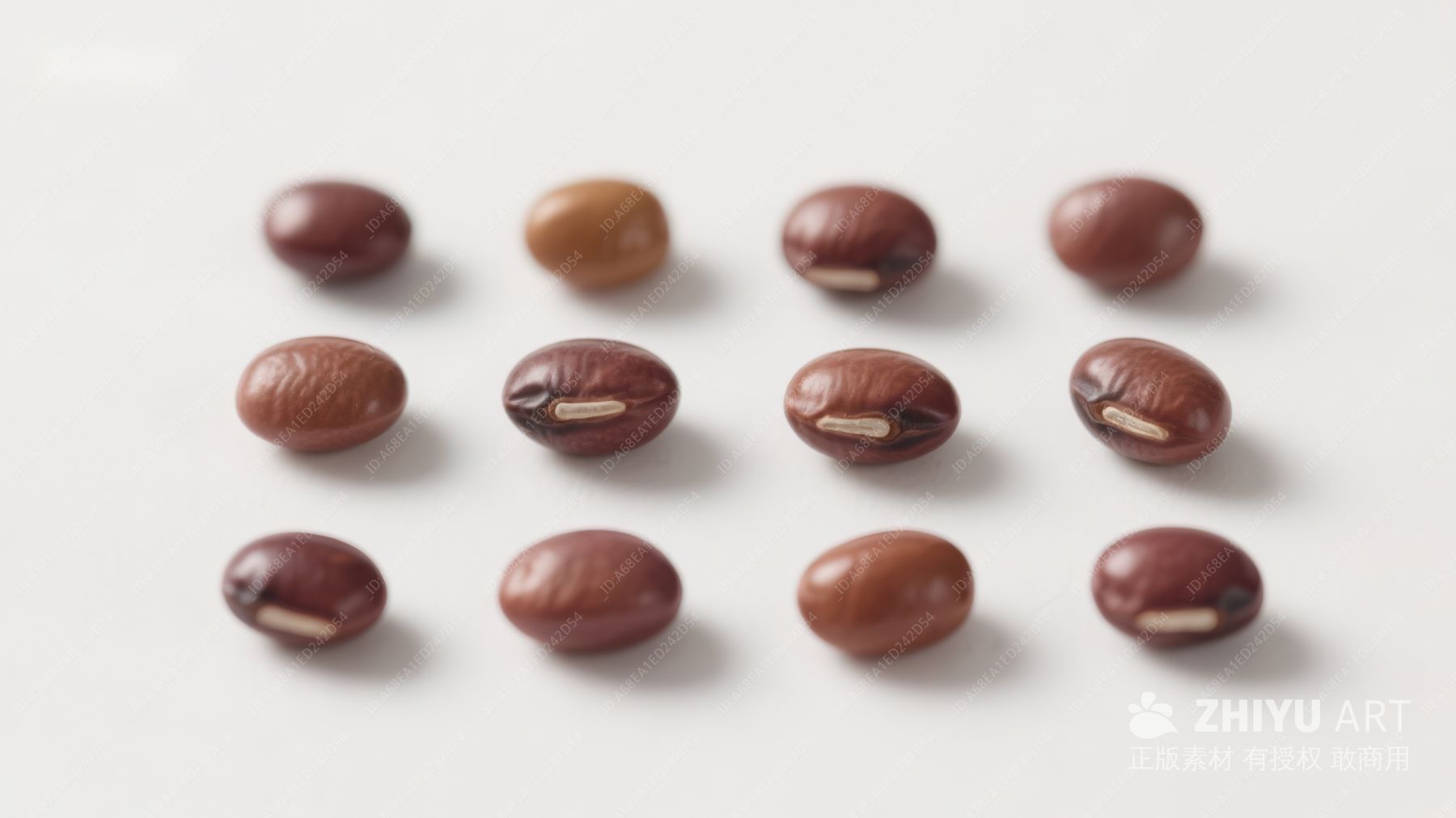 红褐色豆子散落于白色背景