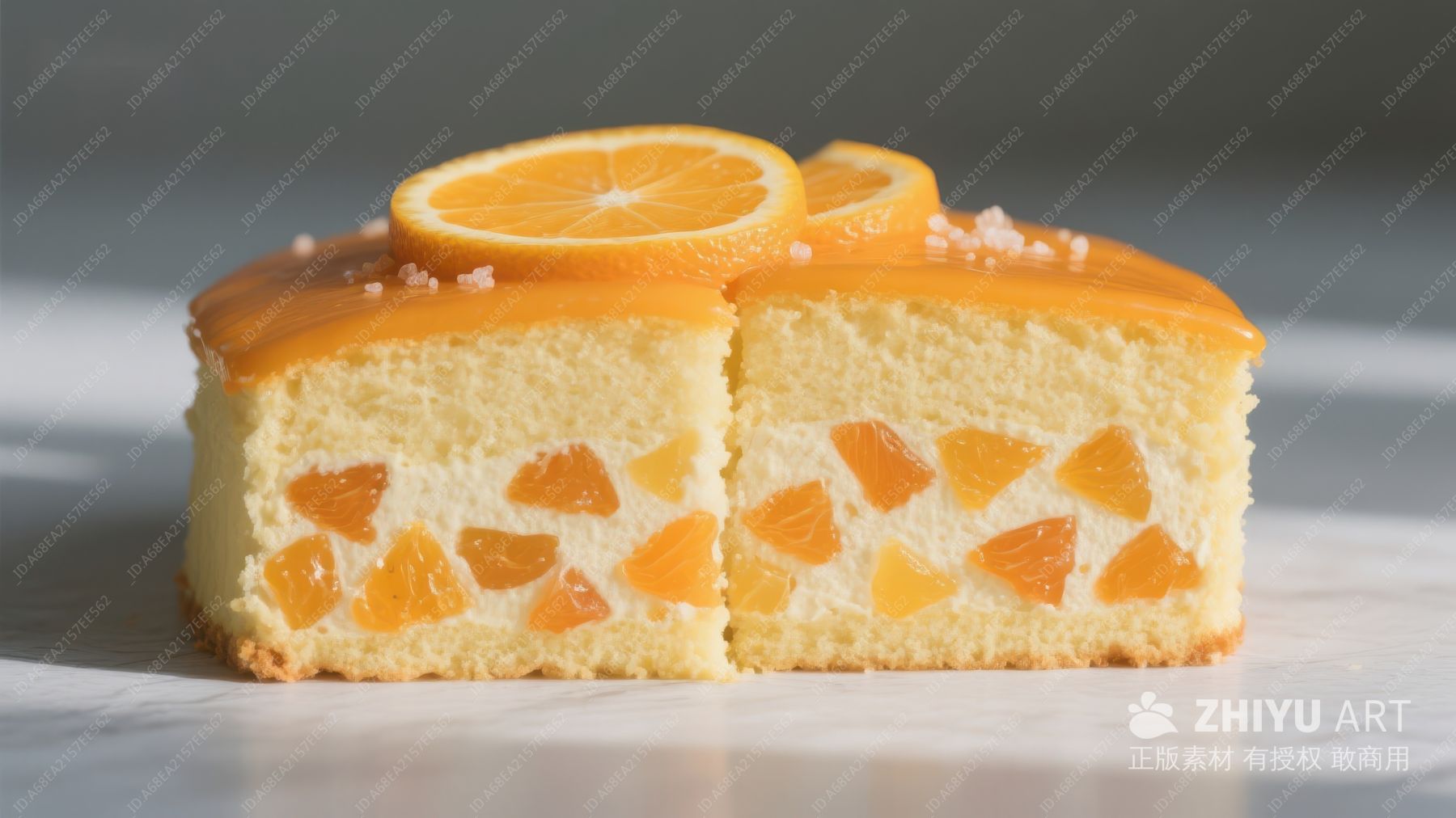 橙香果冻蛋糕切片展示