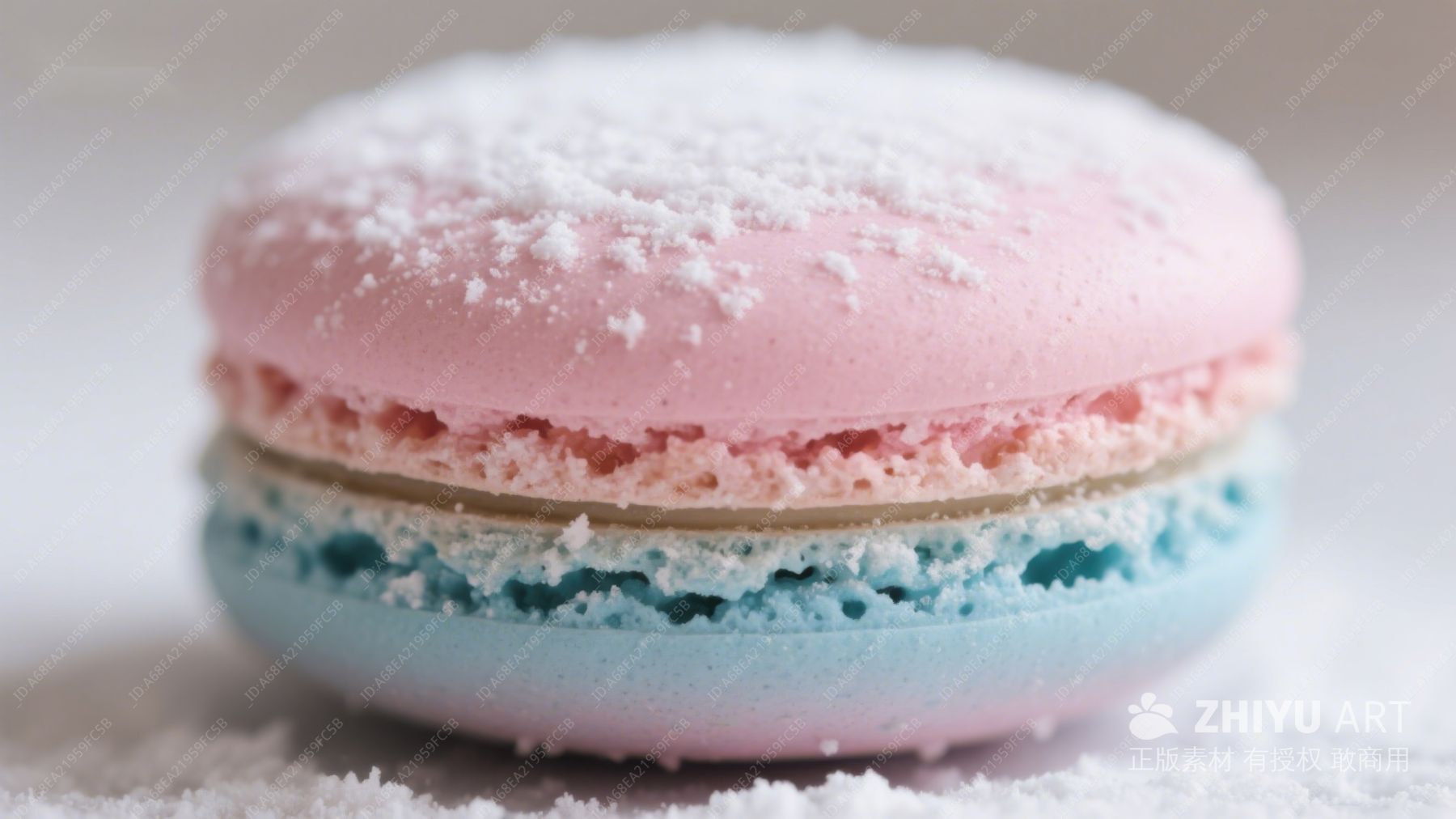 粉色糖霜蓝壳马卡龙特写