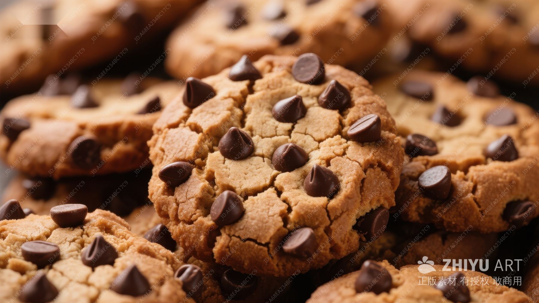 巧克力豆饼干堆叠特写