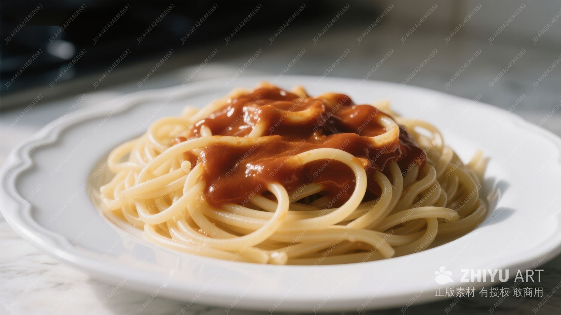 一盘造型精美的螺旋状意大利面,巧妙地排列并淋上浓郁