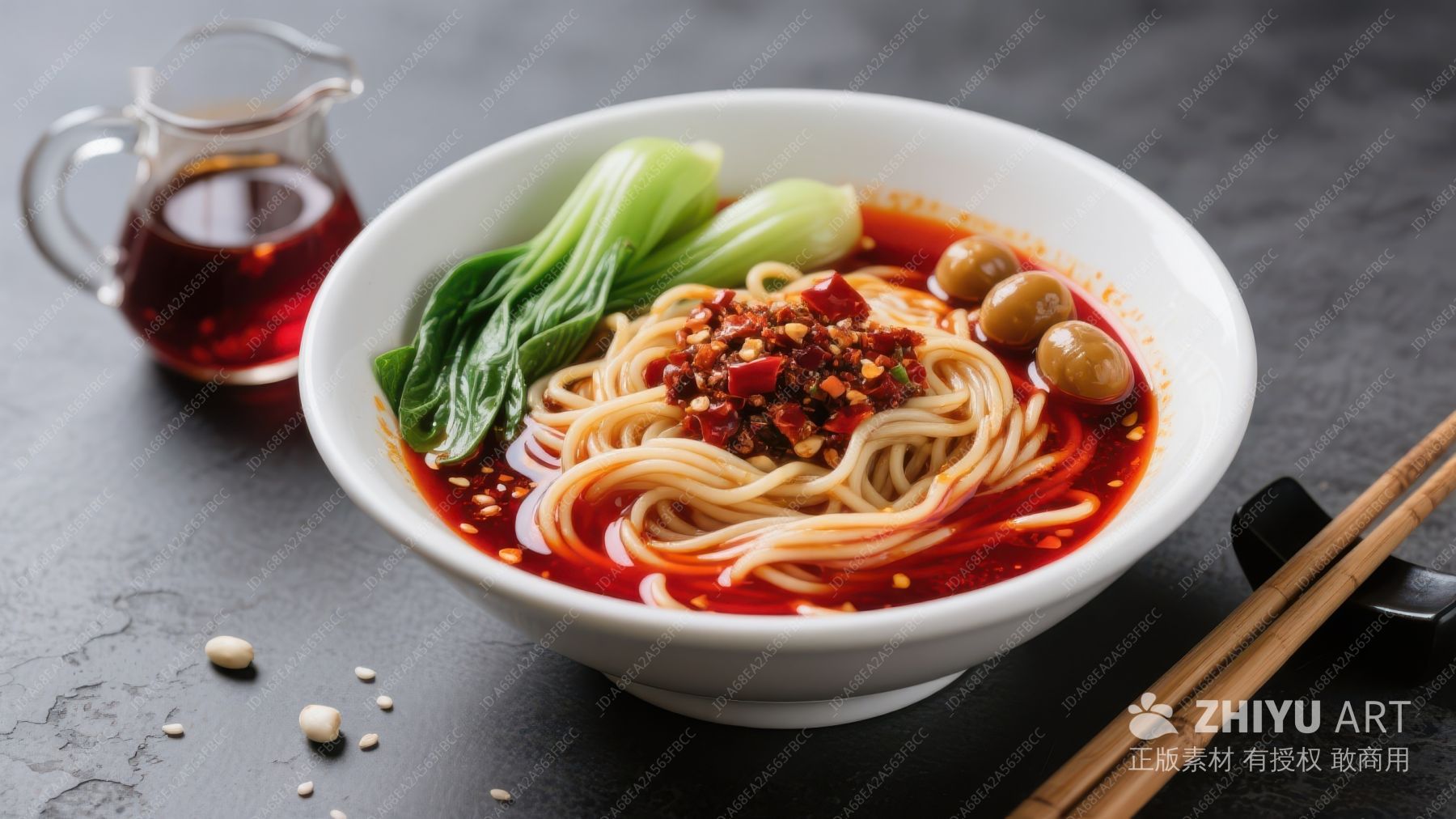 红油辣面配青菜与花生