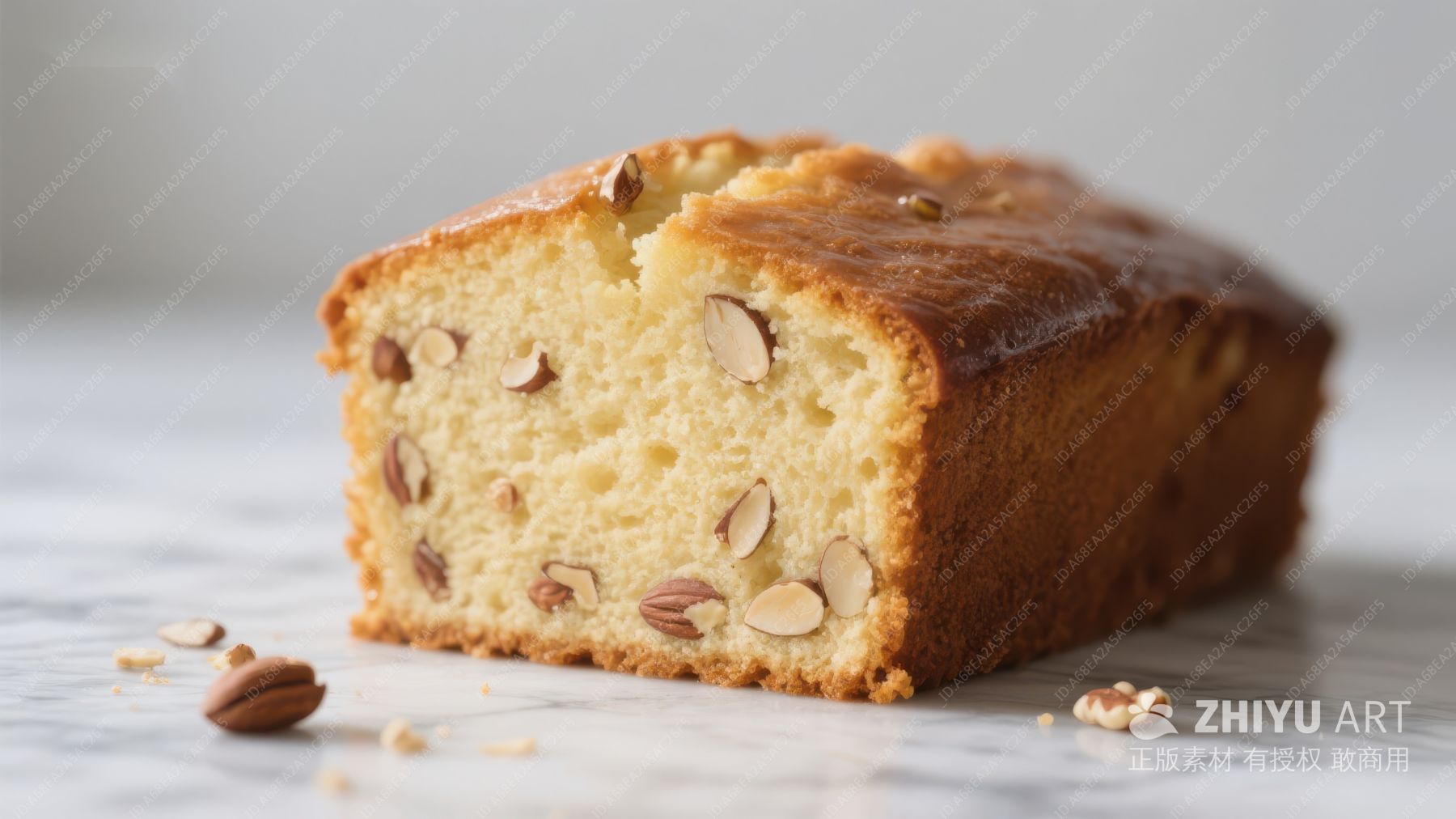 坚果蛋糕切片,金黄色诱人外观
