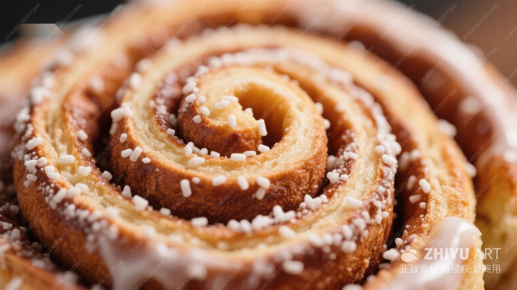 螺旋面包特写,撒满糖粒
