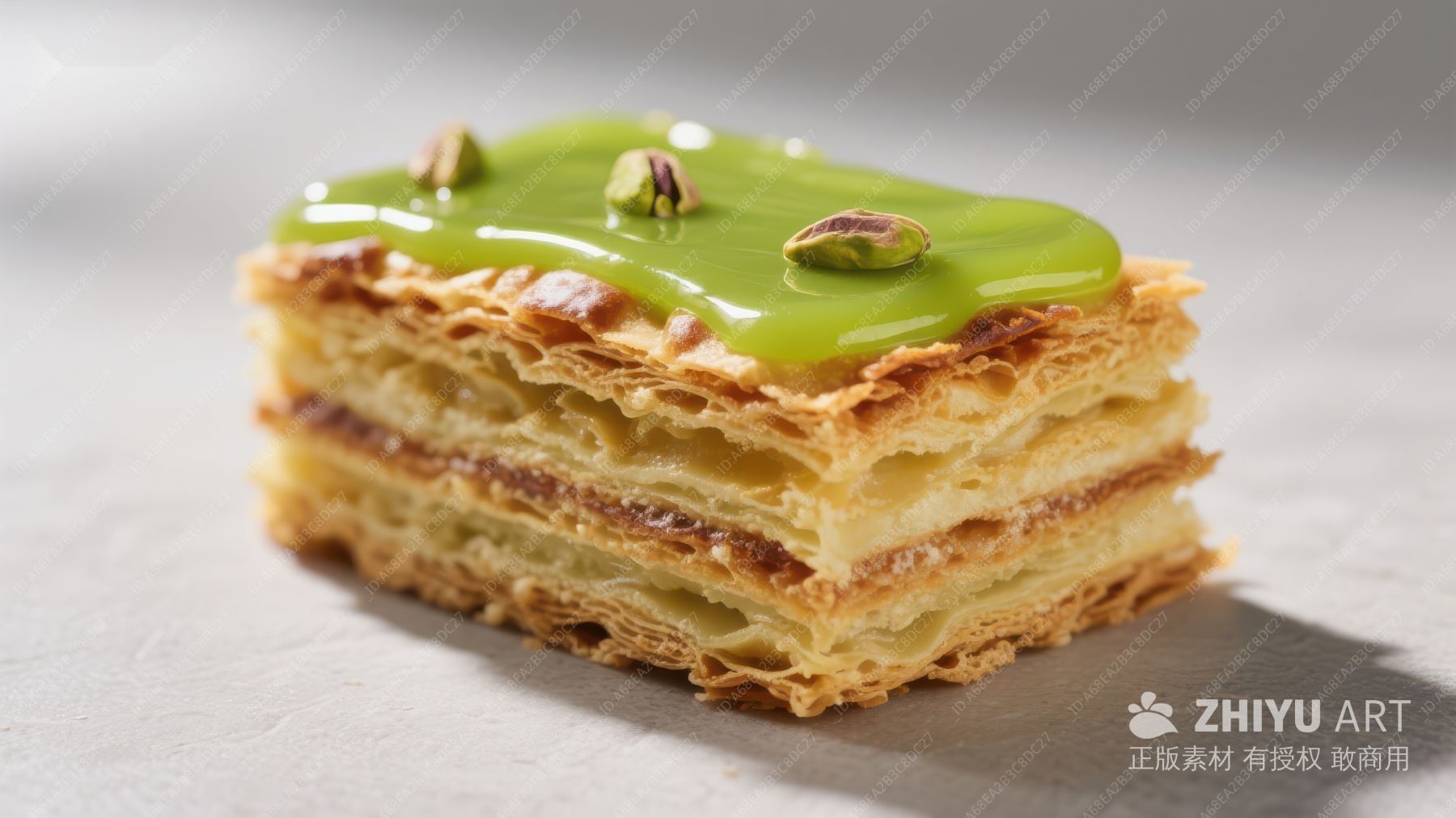 绿酱点缀的酥皮糕点
