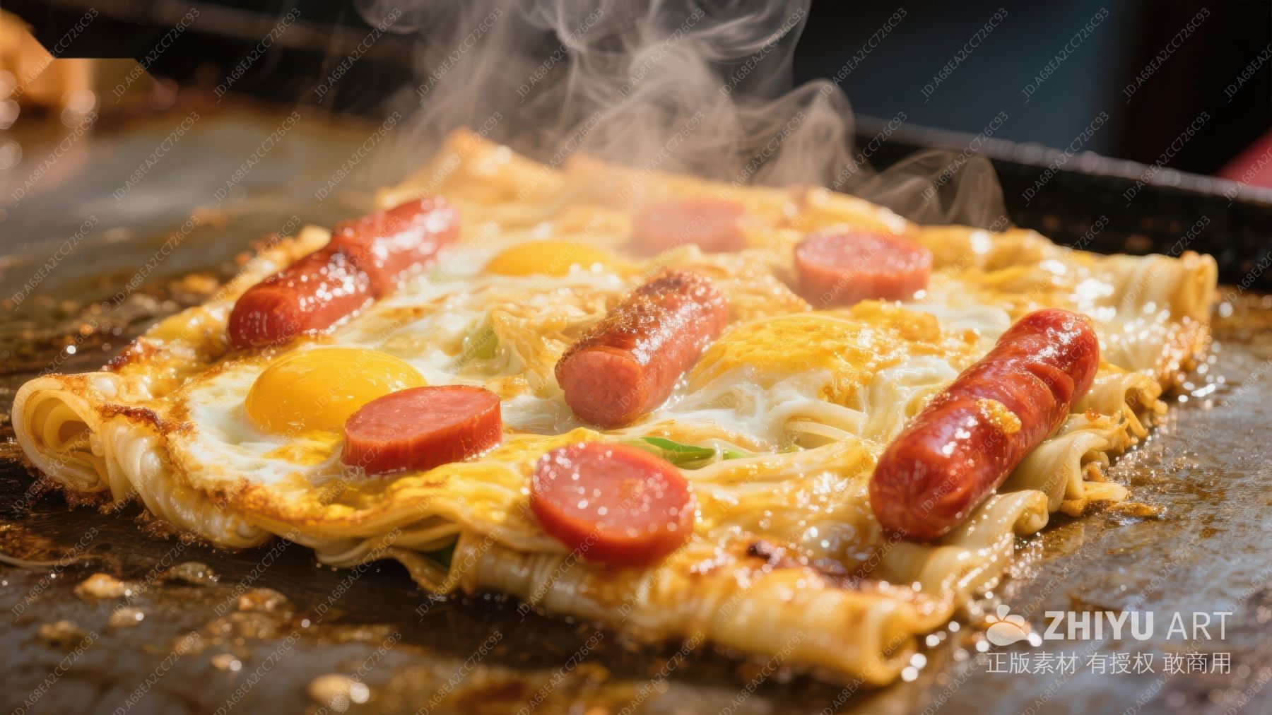 热气腾腾的煎饼美食