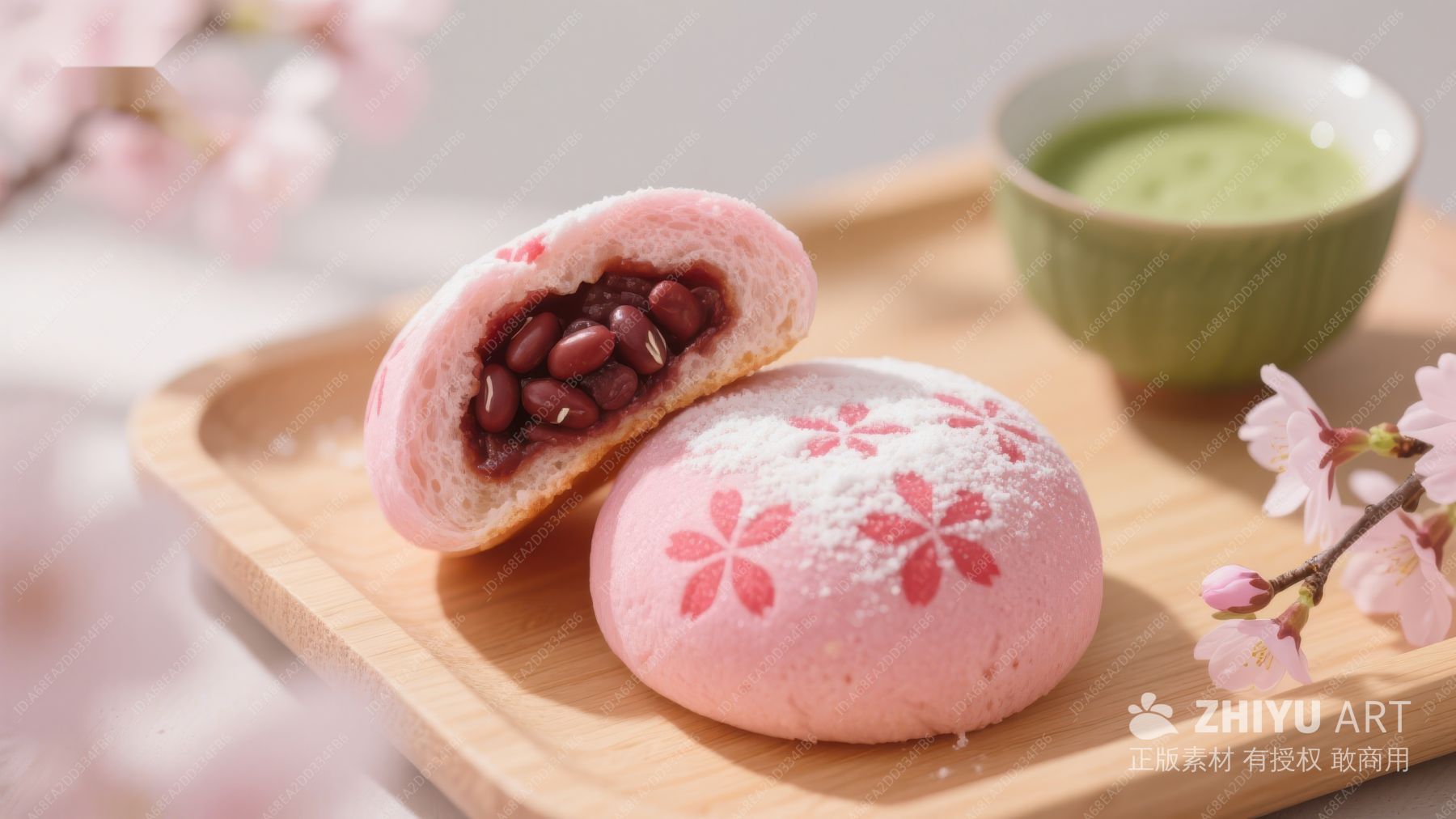 樱花豆沙包与抹茶,春日美食