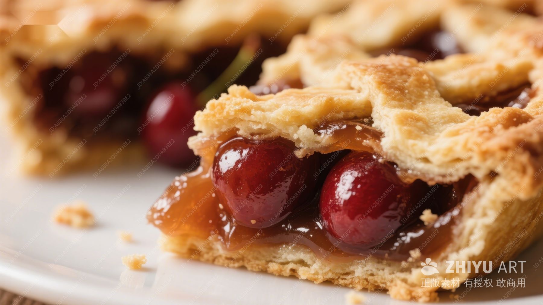 樱桃派特写,金黄色酥皮与鲜红果馅