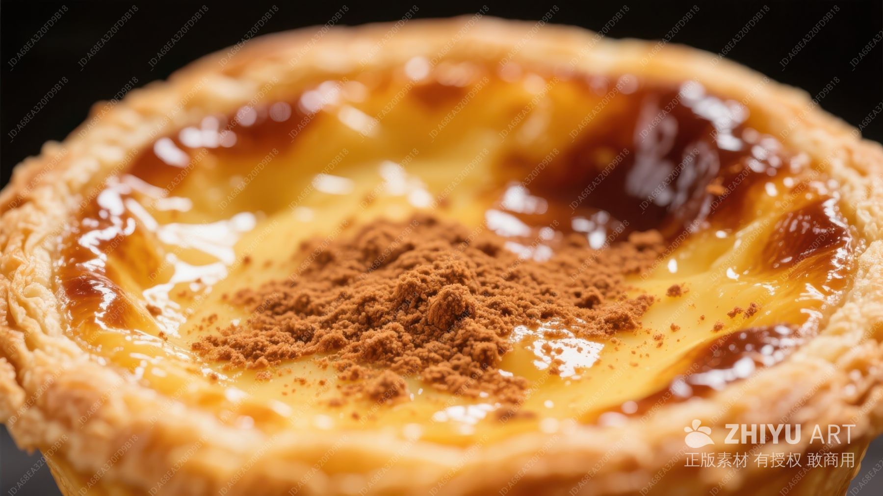 金黄蛋挞特写,酥皮与蛋液完美融合