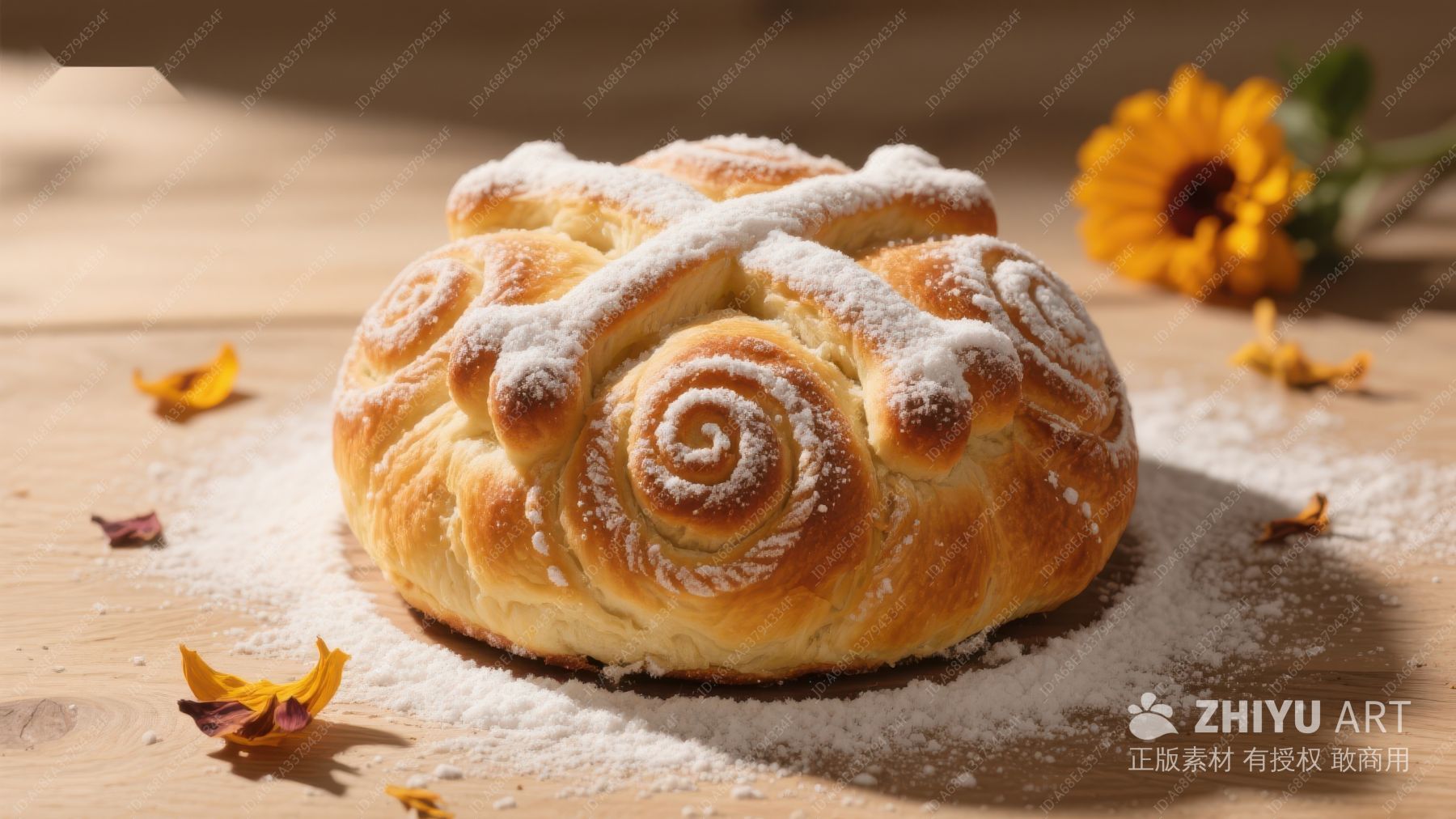 撒粉螺旋面包,点缀橙花
