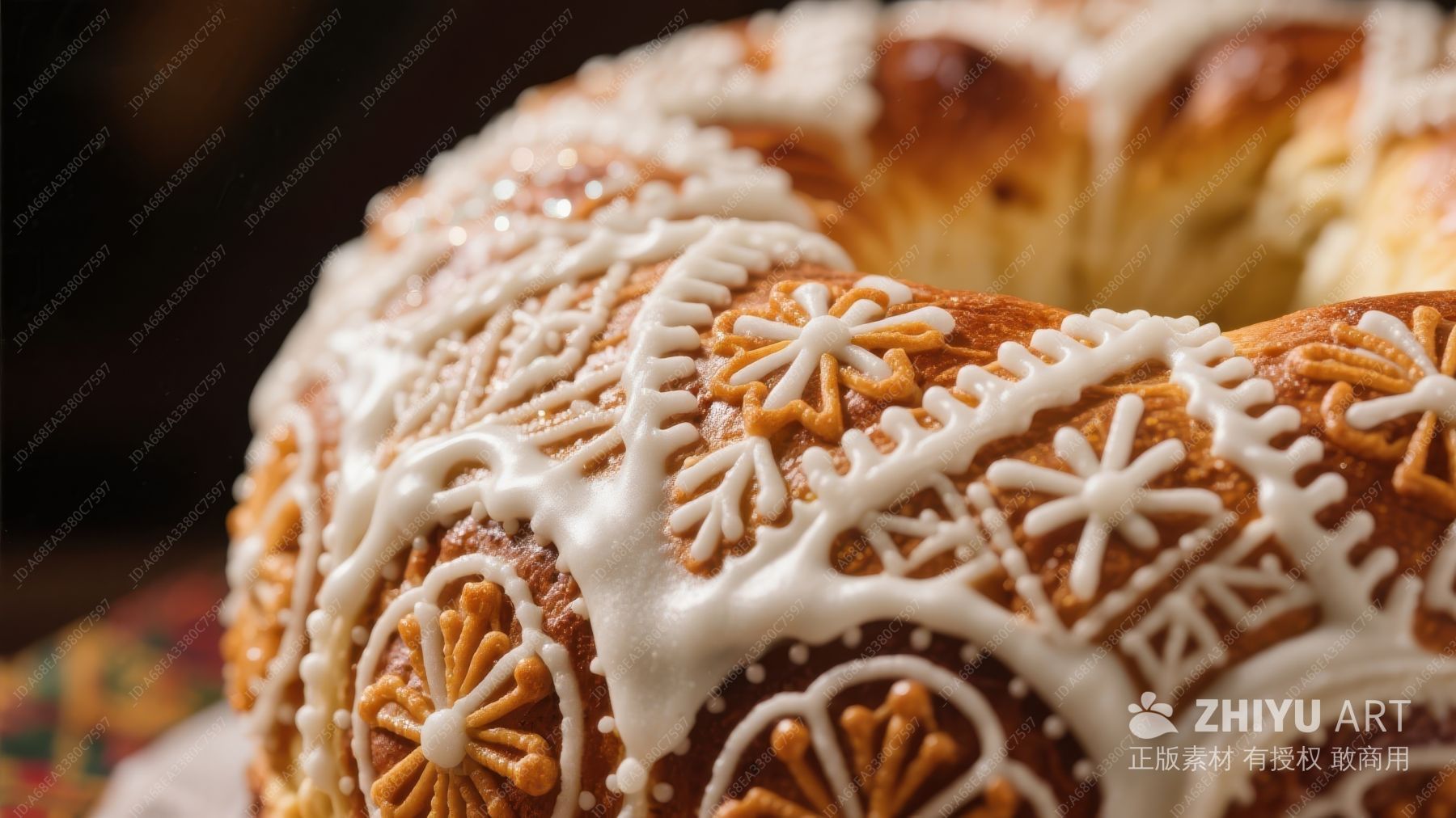 精致糖霜装饰的节日面包