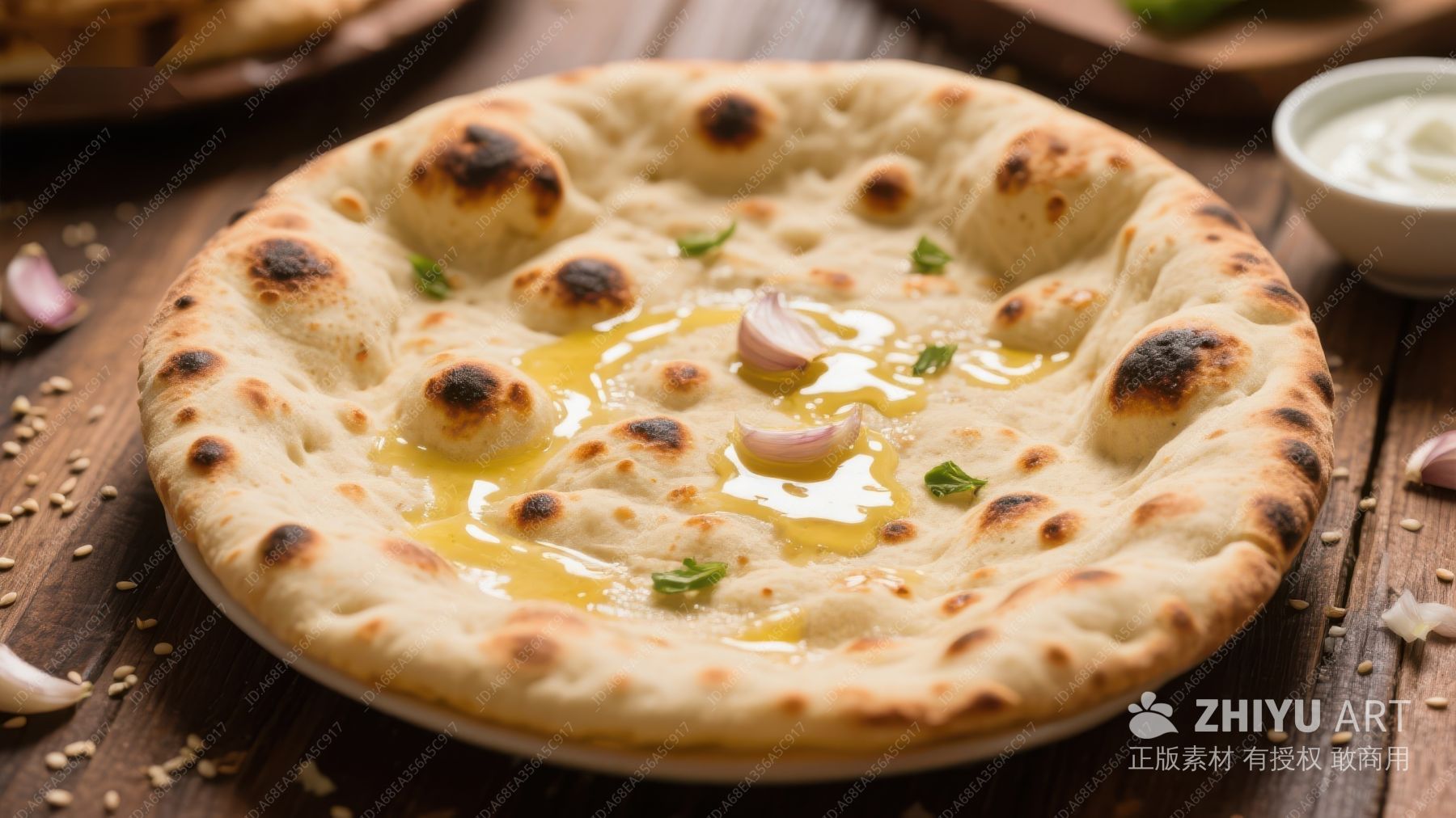 蒜香黄油烤制的印度馕饼