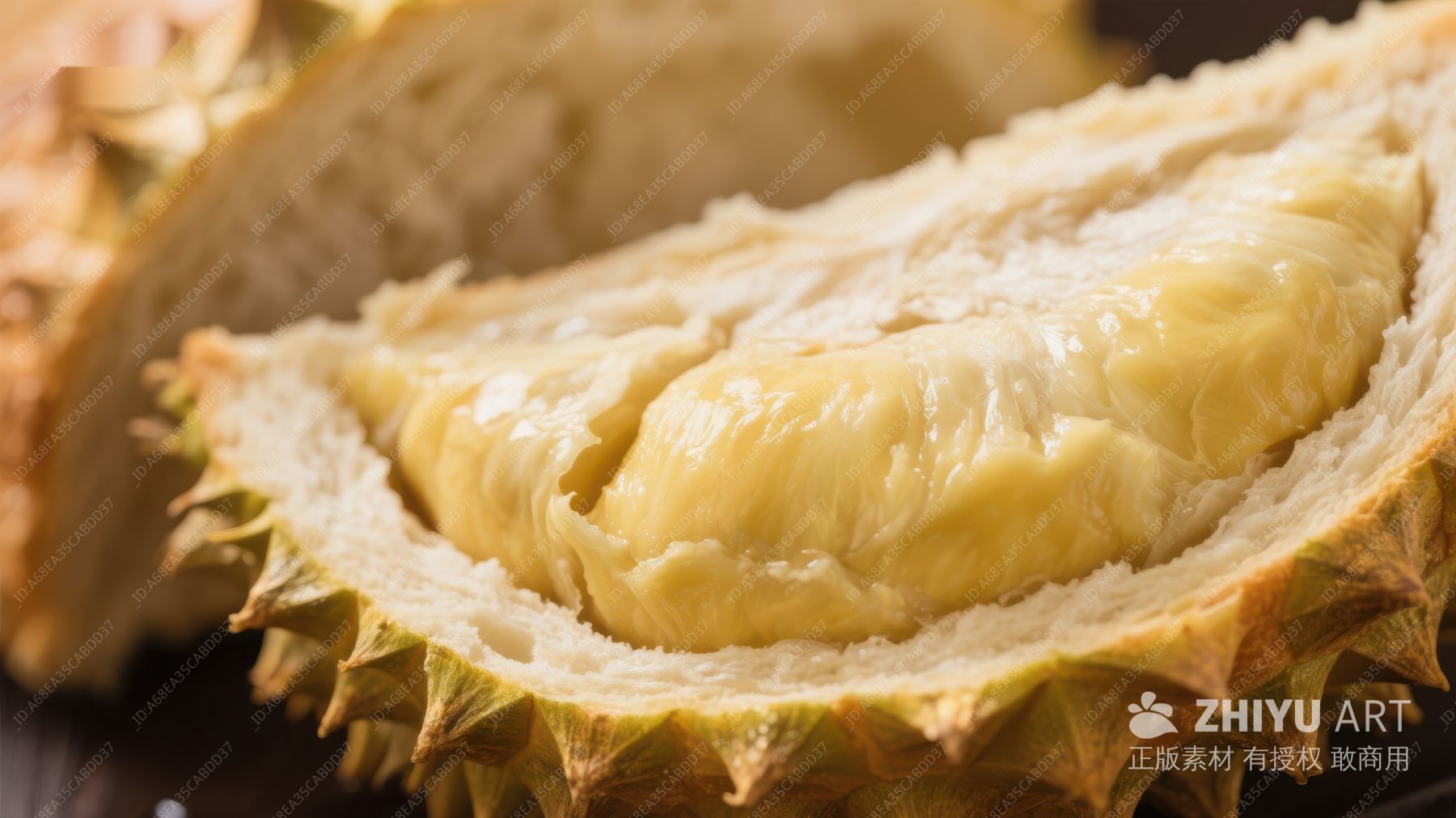 新鲜榴莲切开瞬间,金黄色果肉与纤维 669