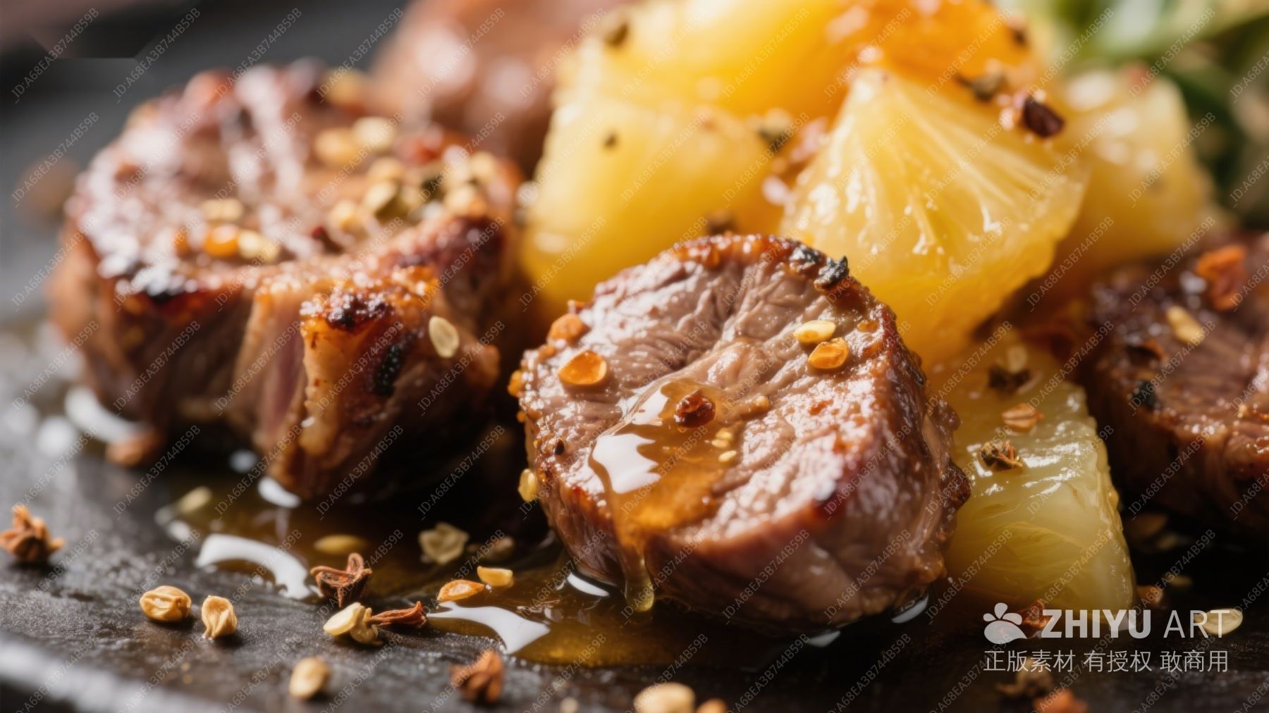 煎烤牛肉配菠萝块