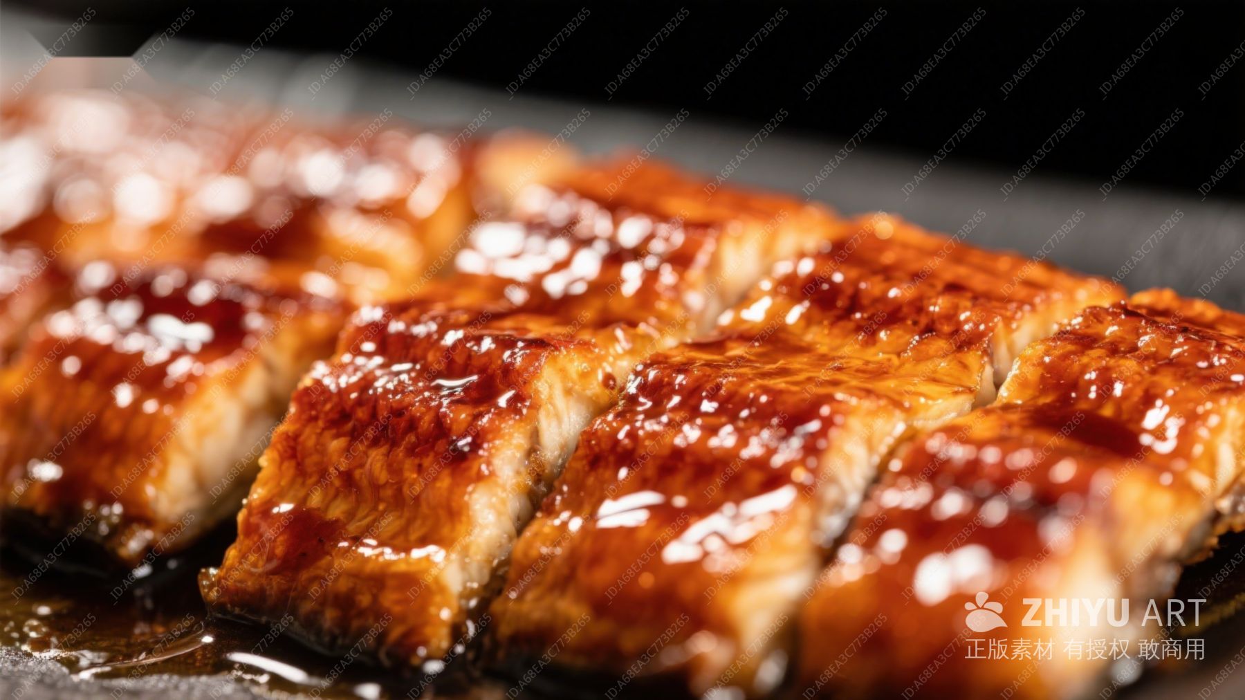 烤鳗鱼特写,酱汁光泽诱人