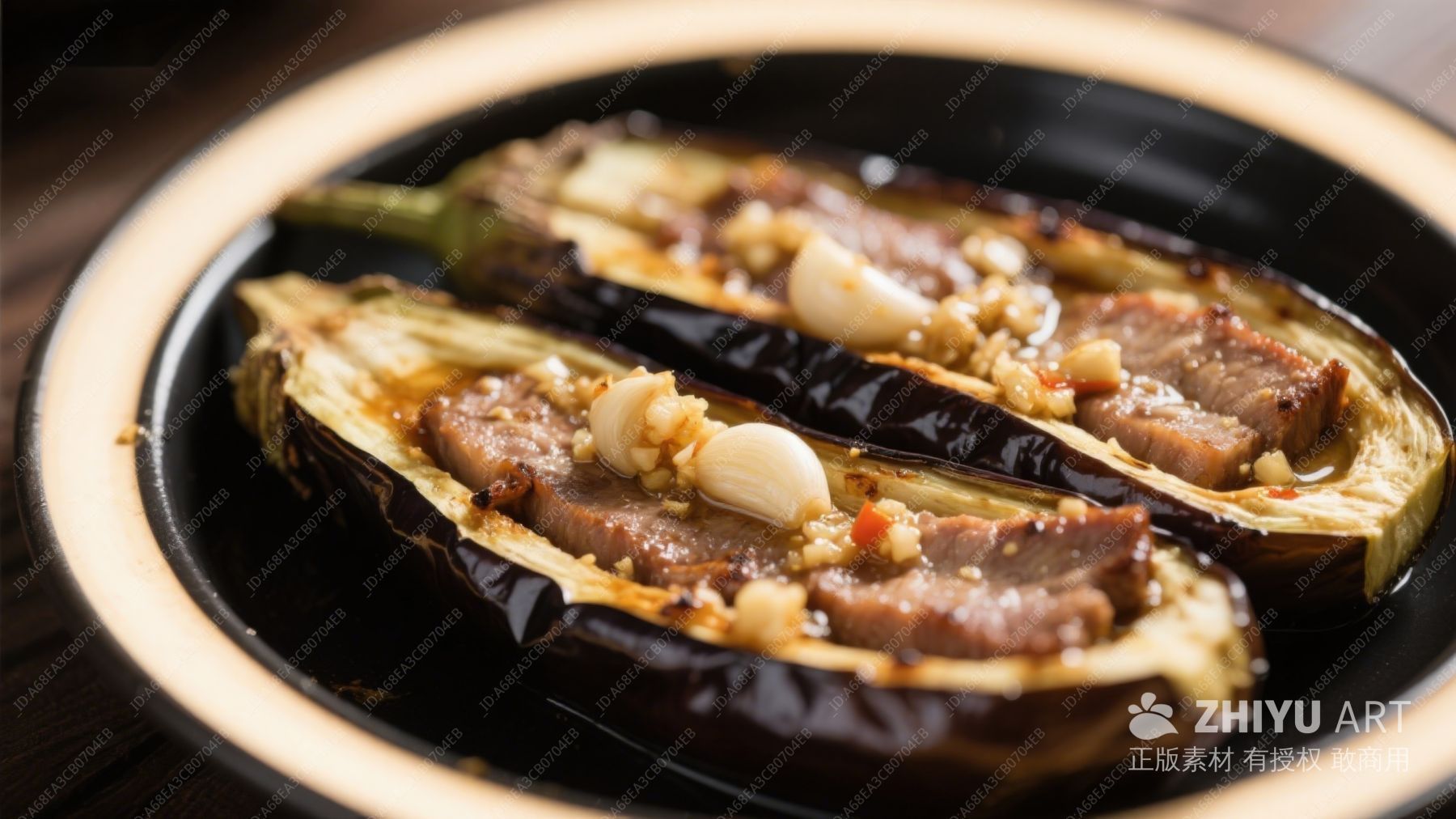 烤茄子配蒜香牛肉