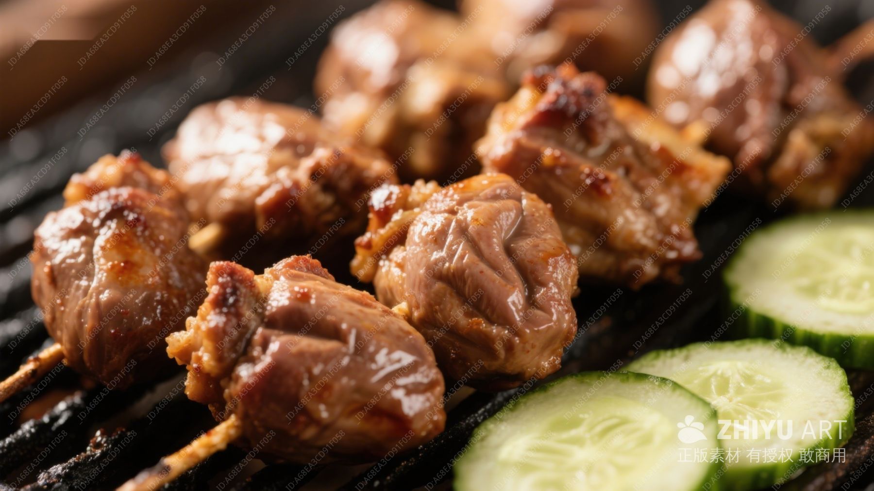 烤肉串与黄瓜片的美味组合