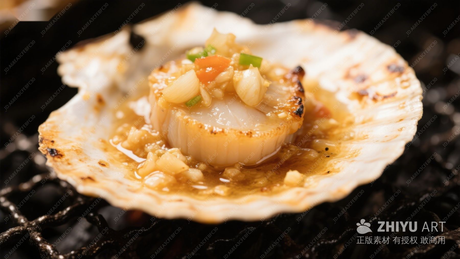 烤制蒜蓉扇贝,美味海鲜佳肴