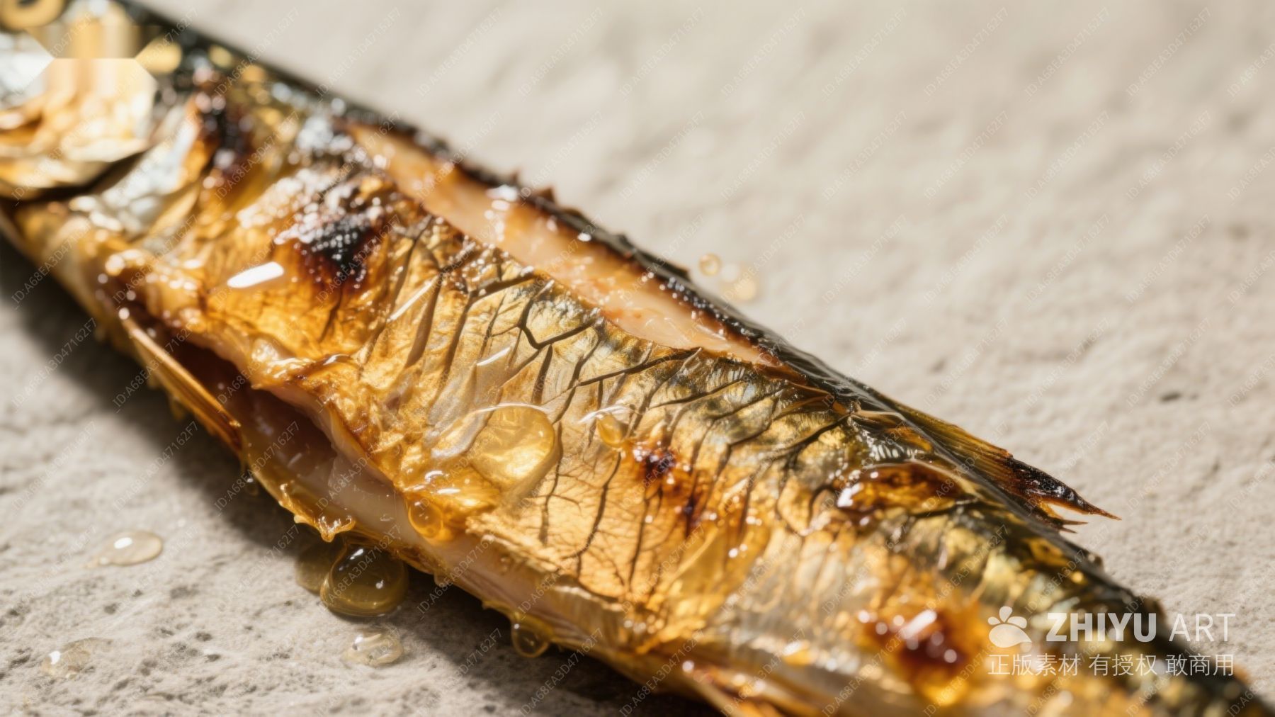 烤鱼特写,金黄焦香