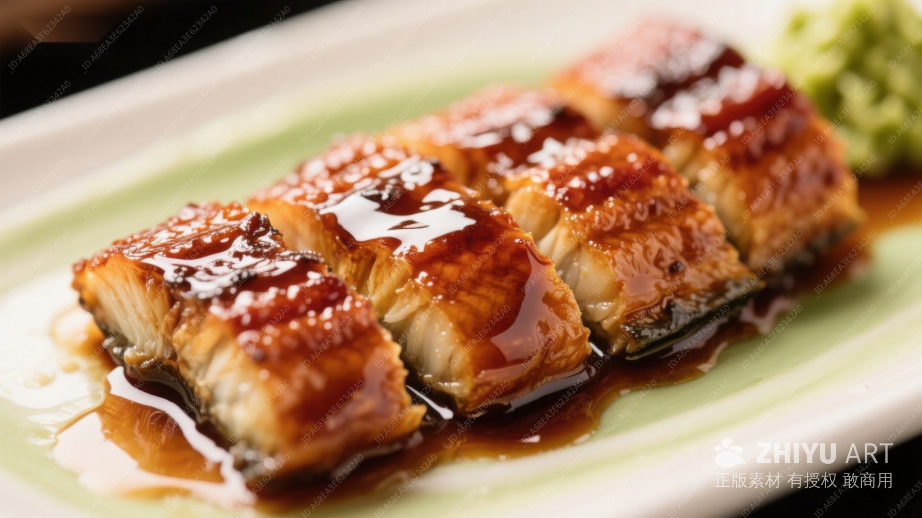 烤鳗鱼特写,酱汁光泽诱人