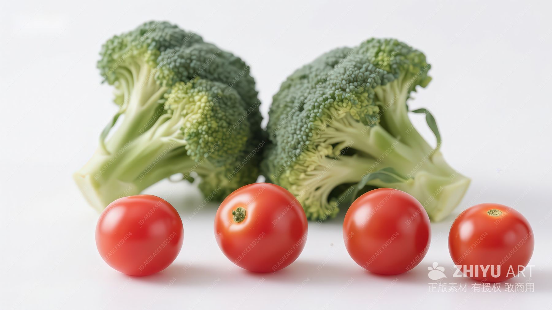 新鲜西兰花与樱桃番茄置于砧板上 340
